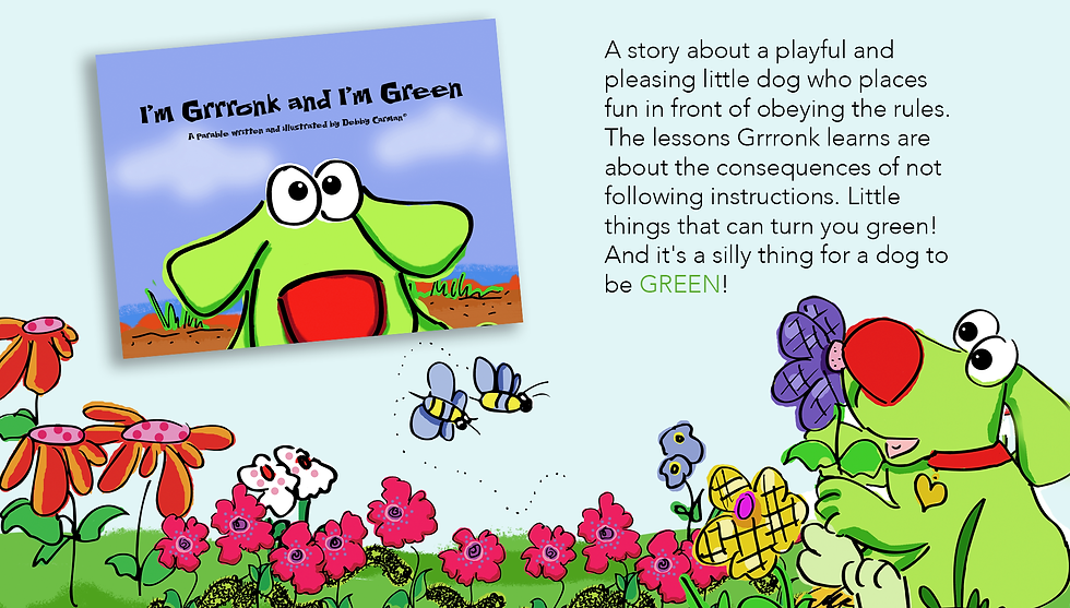 An affable but easily distracted little dog who places fun in front of obeying the rules. A story of conflict and consequences. Little things that can turn you green and it's a silly thing for a dog to be green
