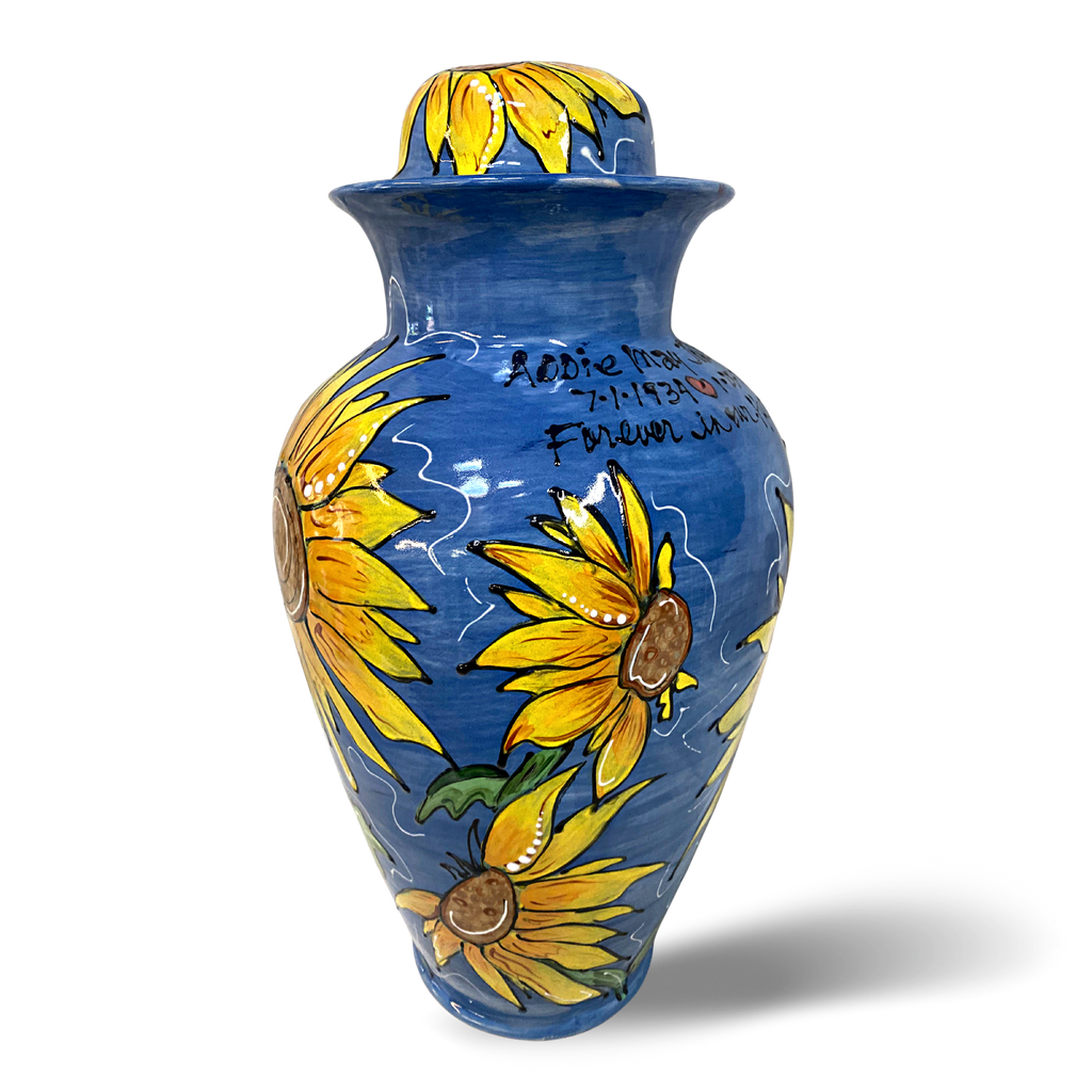 Each urn is meticulously hand-painted with intricate details and vibrant colors, making it a truly unique and personalized tribute. With optional designs available and special custom design requests welcome, you have the freedom to create a memorial that reflects the individuality and spirit of your beloved.