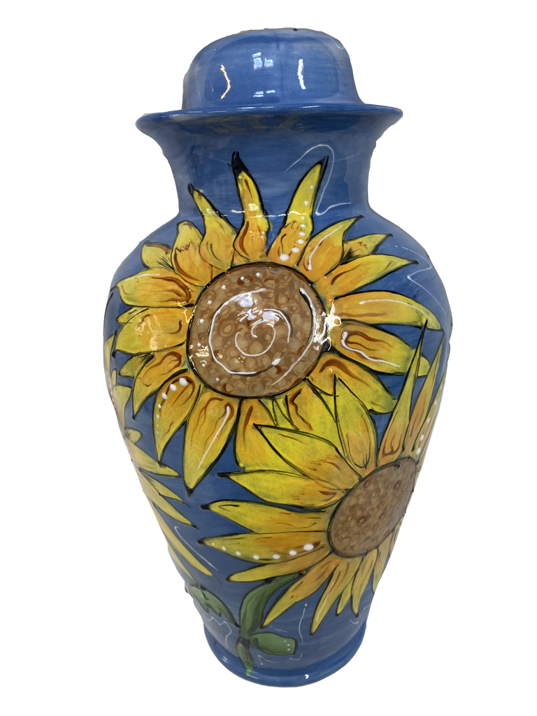 Introducing our exquisite Urn for Human Ashes, a true masterpiece crafted by the talented artist, Debby Carman. This one-of-a-kind porcelain ceramic urn is not just a container for ashes, it is a work of art that celebrates the life and memories of your loved one.
