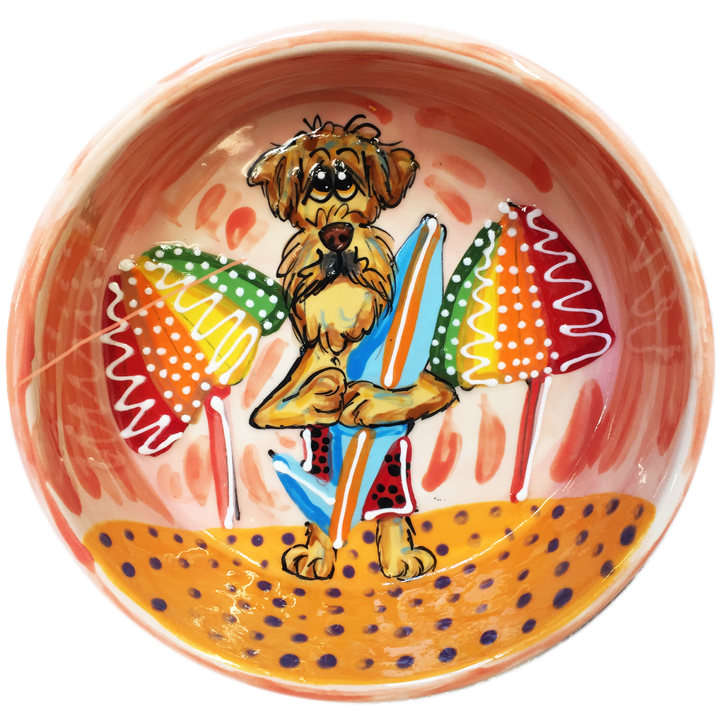 Golden Doodle Beach Handmade Ceramic Dog Bowl