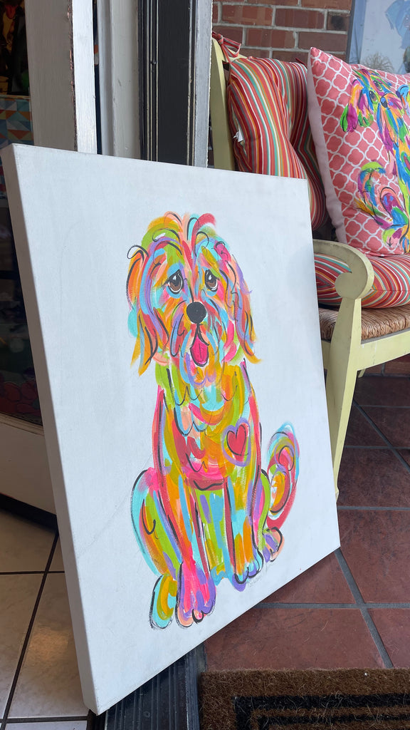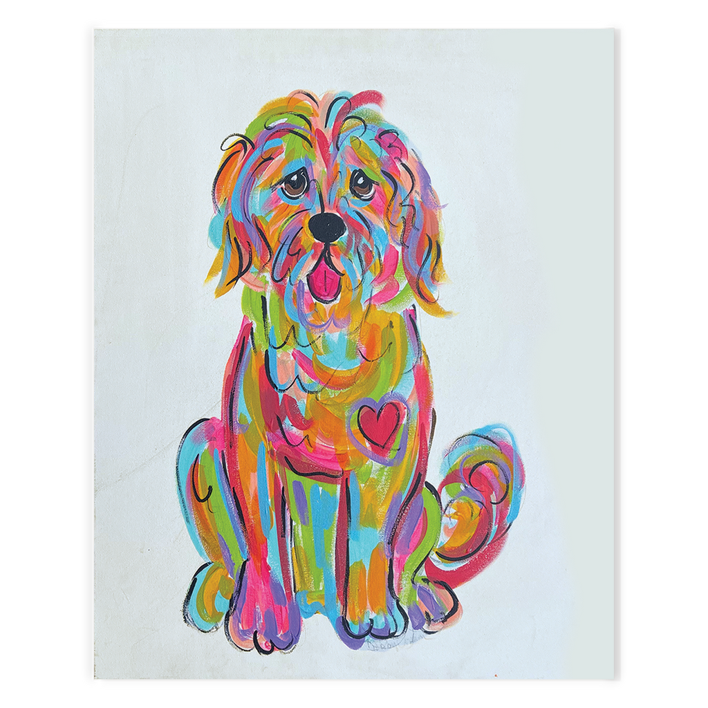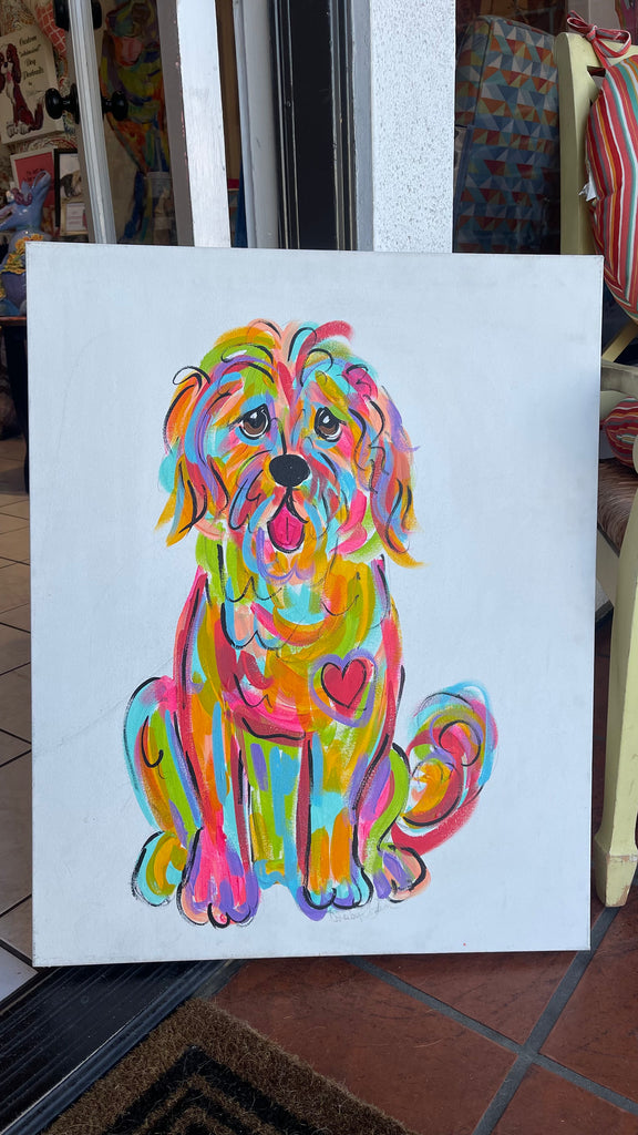 24W x 30H Original Rainbow Dog Painting by Debby Carman