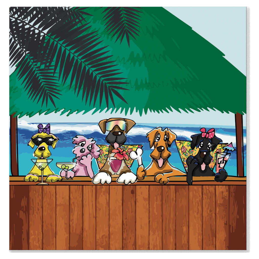Cabana Paws is part of a collection created for Yappy Hour hosted by the Ritz Carlton. This piece is a high resolution giclee print on 36"x36" stretched canvas.