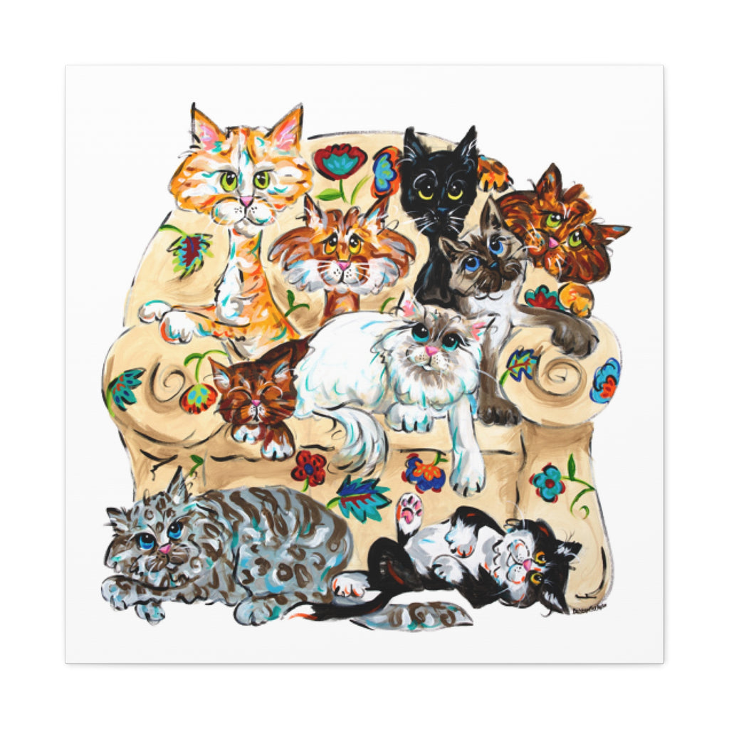 Step into a world of feline fantasy with Debby Carman's "Catastrophe" canvas reproduction, where each stroke weaves a tapestry of playful purrs and pouncing paws. This delightful artwork is a love letter to cat enthusiasts, capturing the mischievous charm and enchanting personalities of our whiskered companions.