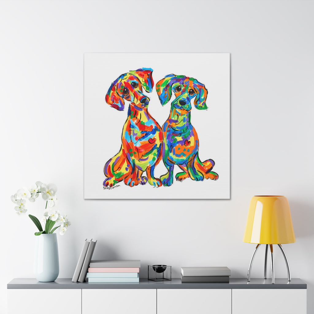 Ideal for dog enthusiasts and art lovers, each giclée print is meticulously printed, stretched, and wrapped on gallery-quality canvas, available in various square sizes for a perfect fit in any space.
