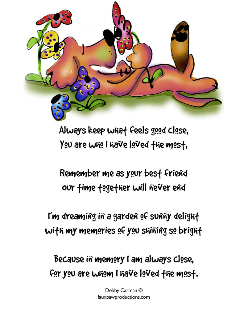 A poem by Debby Carman, inspired by her own loss, to bring comfort with the passing of a pet.