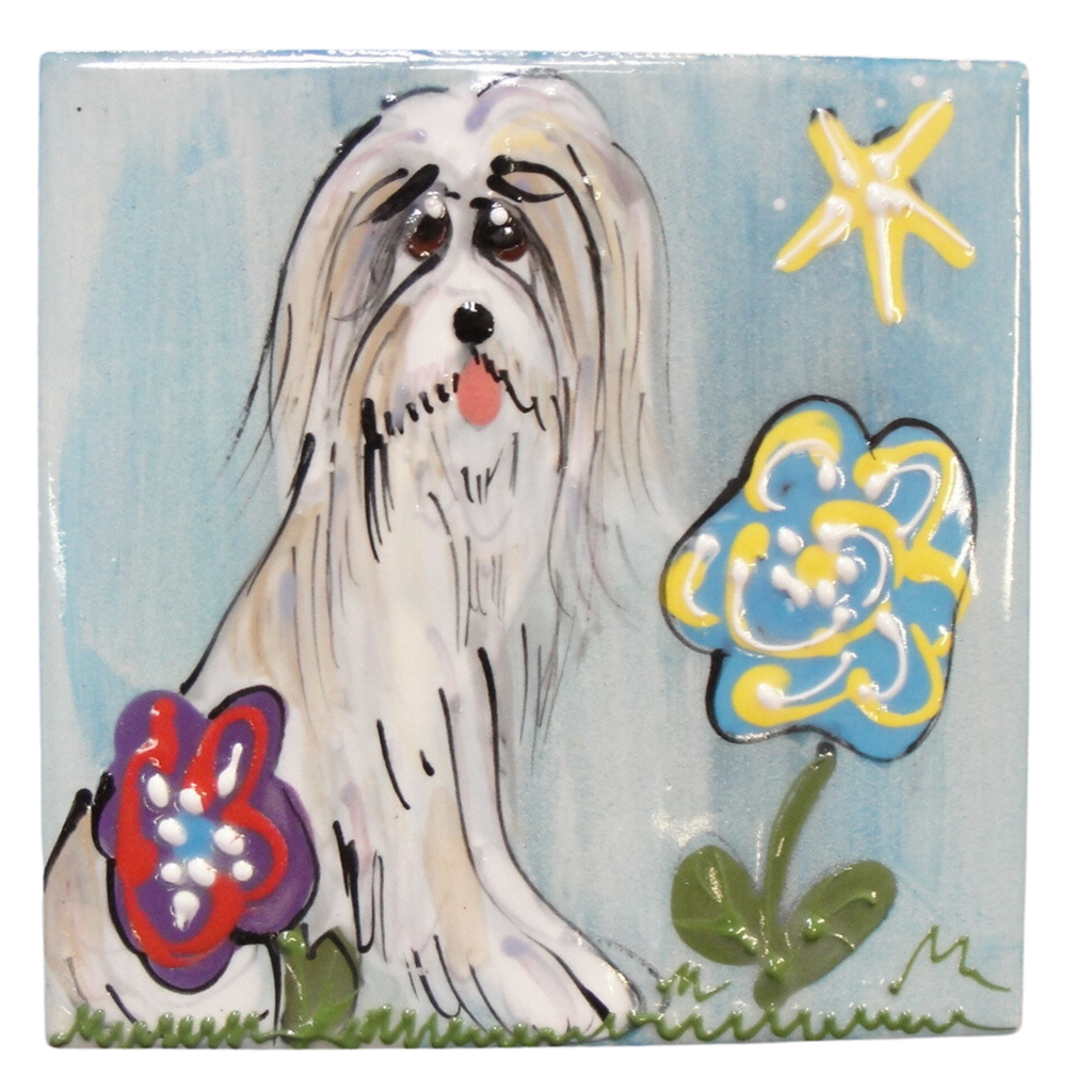 Treat your walls to a furry companion with the Bearded Collie portrait on decorative tile! Brighten any room in your home with an adorable, hand-painted Bearded Collie on our smooth, ceramic mounted tile. Ready for playtime? Just say the word-and your walls will jump to life! (Not literally, of course).