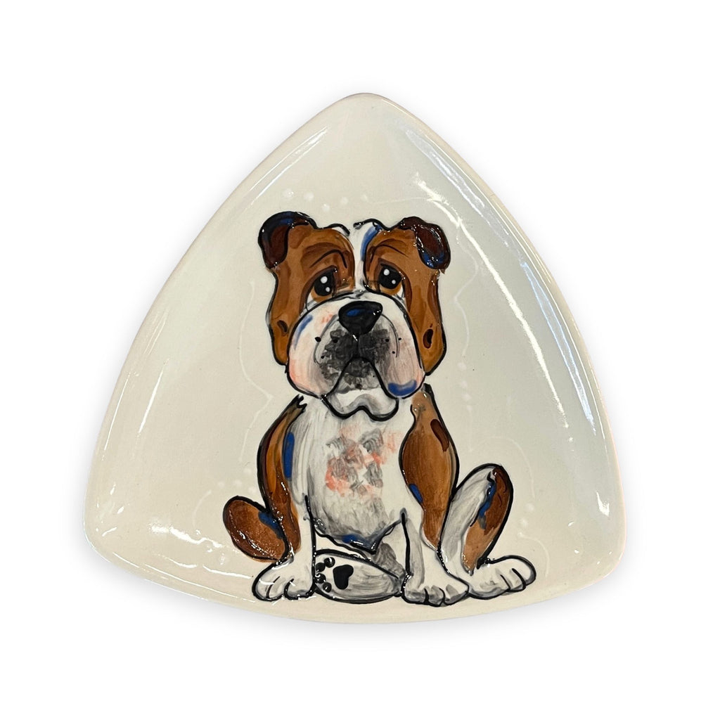 7" Ceramic triangle plate with hand-painted Bulldog or any breed standard. Message us to create a custom with photo of your pet.