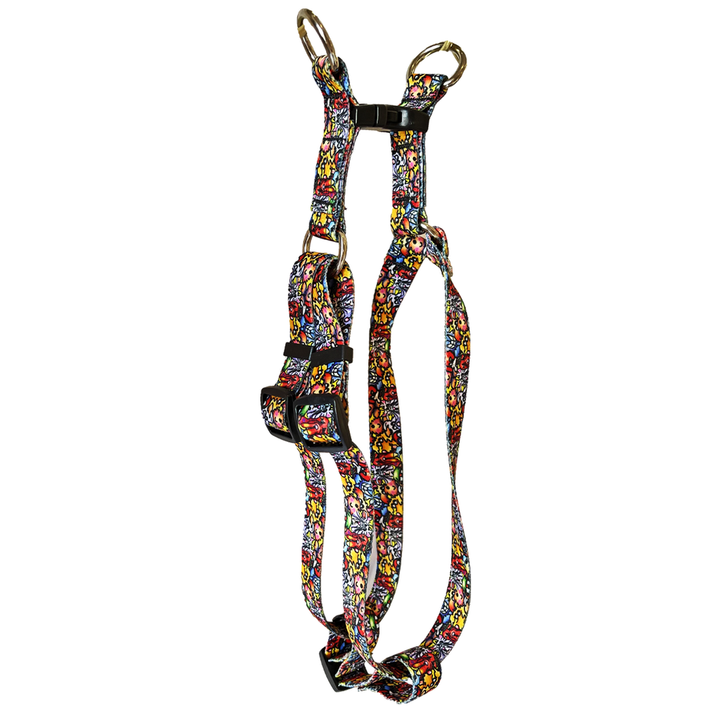 Step-In Harnesses are made to allow your pet to do just that...step in to the harness. Best of all, Furrfugnoogins Harnesses are made in Greensboro, NC with some Global Materials, using 100% vibrant color-fast polyester with durable plastic slip locks, metal O-Rings and metal D-Rings. Our harness is washable!