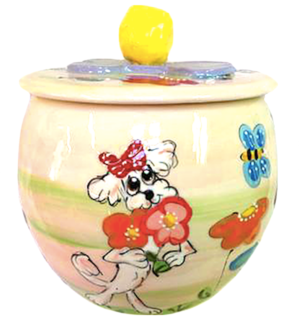 Custom Ceramic Pottery Dog Treat Jar. Unique and one of a kind, each piece is hand made in the USA.