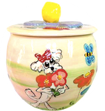 Each treat jar is hand thrown from the finest white porcelain china, hand-drawn, hand-painted, bisque fired for 16 hours, glazed with three hand-brushed applications, and finish fired for 8 more hours. Rubber gasket secure freshness seal. Food safe, dishwasher safe, non-toxic, and lead-free.