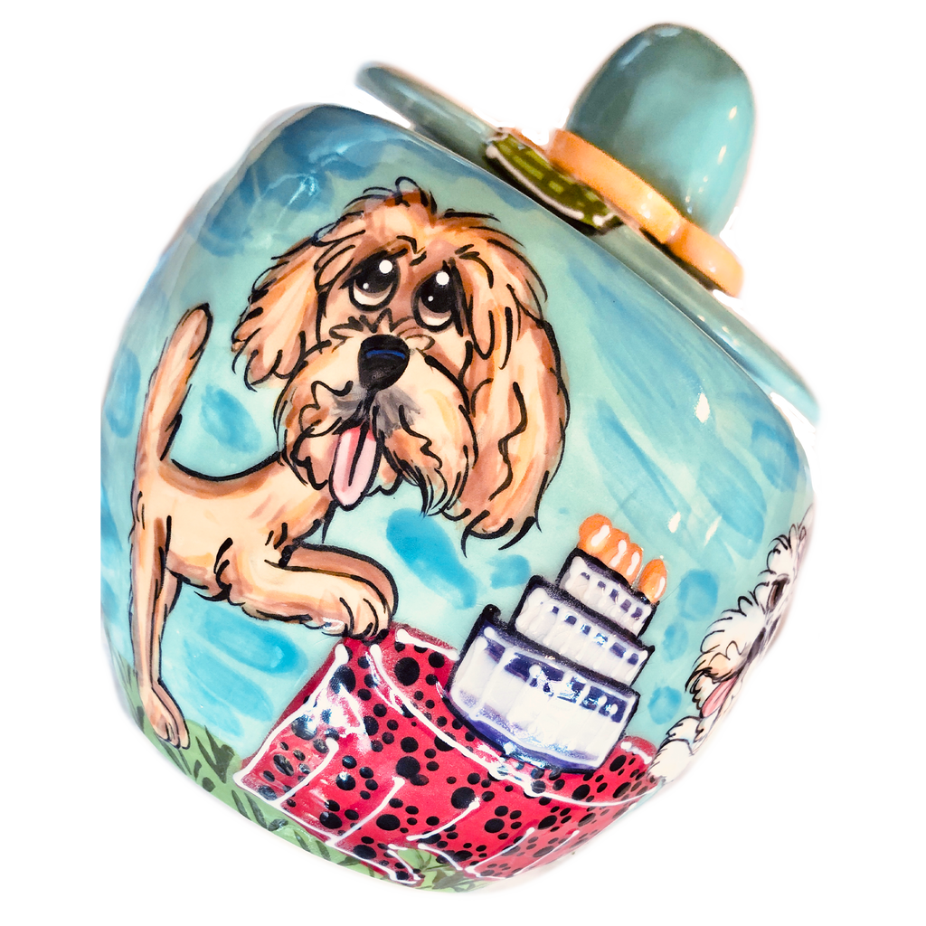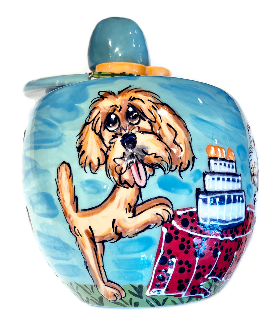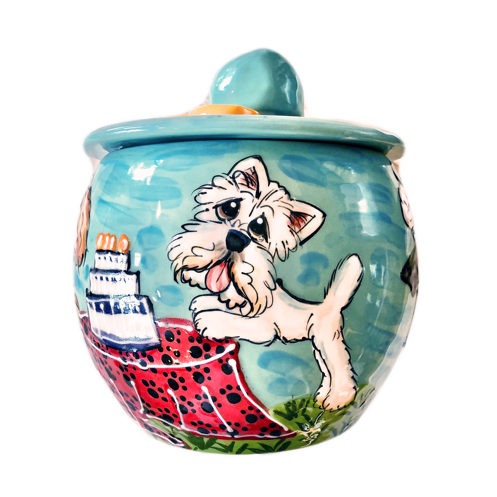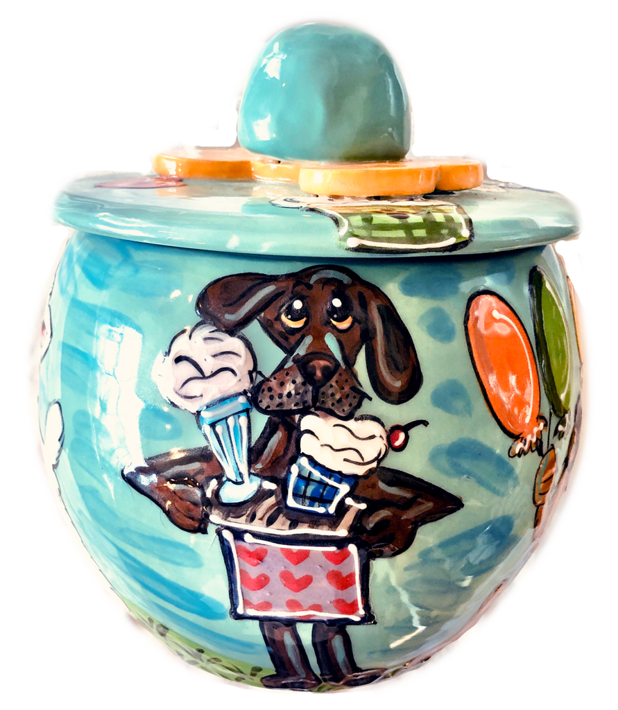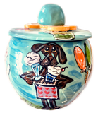 Custom Ceramic Pottery Dog Treat Jar. Unique and one of a kind, each piece is hand made in the USA.