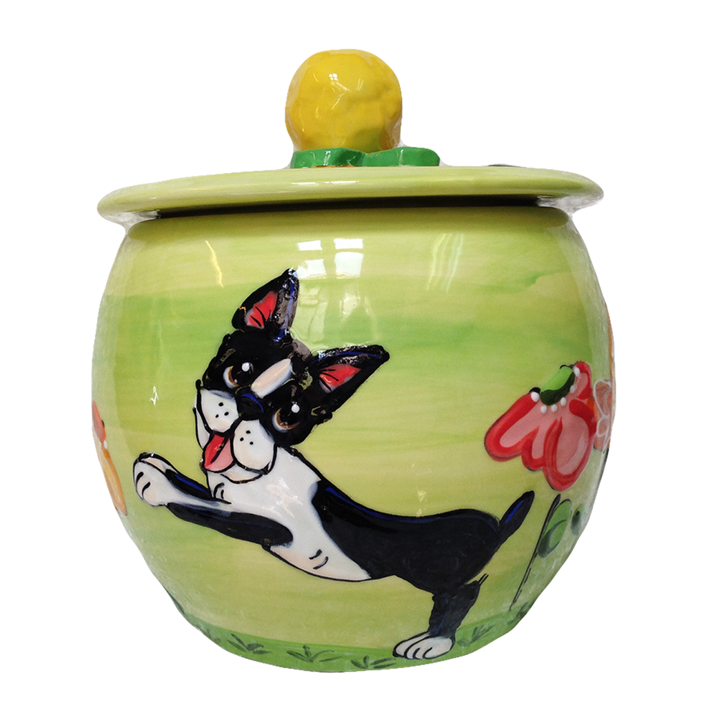 Custom Ceramic Pottery Dog Treat Jar. Unique and one of a kind, each piece is hand made in the USA.