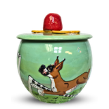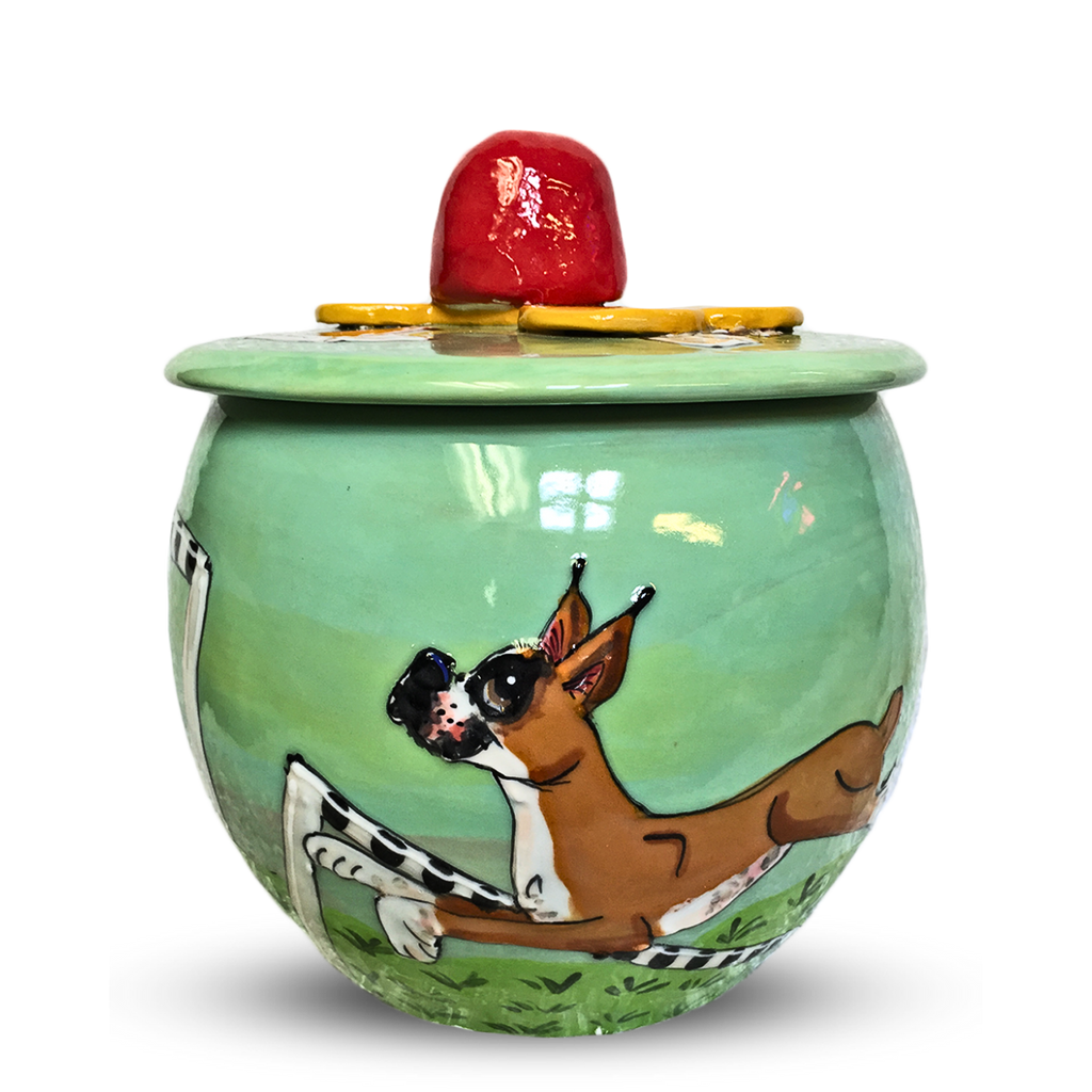 Custom Ceramic Pottery Dog Treat Jar. Unique and one of a kind, each piece is hand made in the USA.