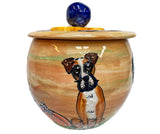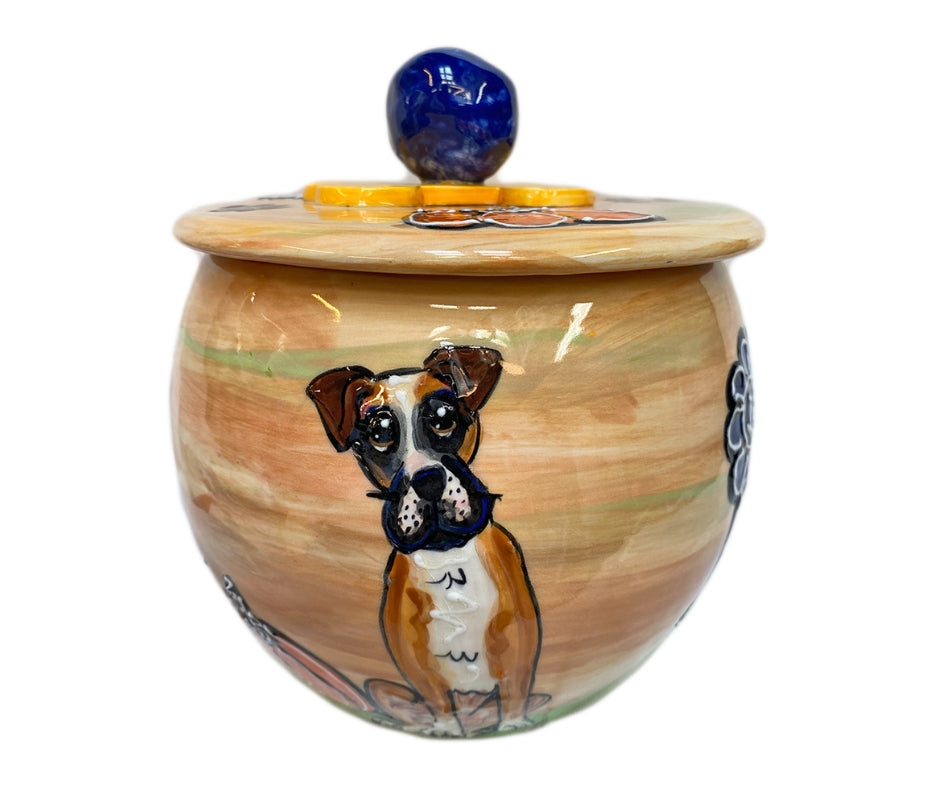 Discover the "Boxer's Bounty Handcrafted Treat Jar," a Debby Carman original that celebrates the iconic Boxer breed. Each jar is an American-made work of art, featuring a Boxer's likeness hand-painted with affection and precision.