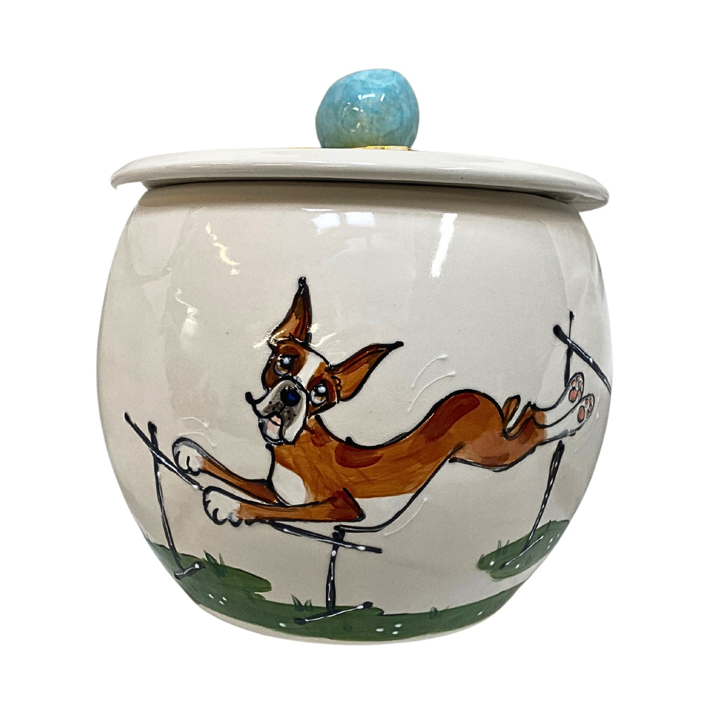 Hand-painted by the renowned Debby Carman in the USA, each jar features a Boxer in peak show form, exemplifying the breed's noble stature and spirited character.