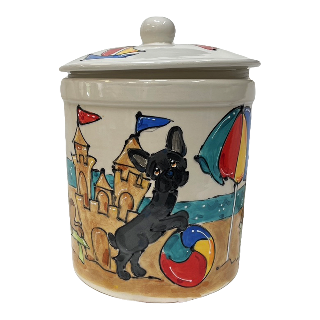 Custom Ceramic Pottery Dog Treat Jar. Unique and one of a kind, each piece is hand made in the USA.