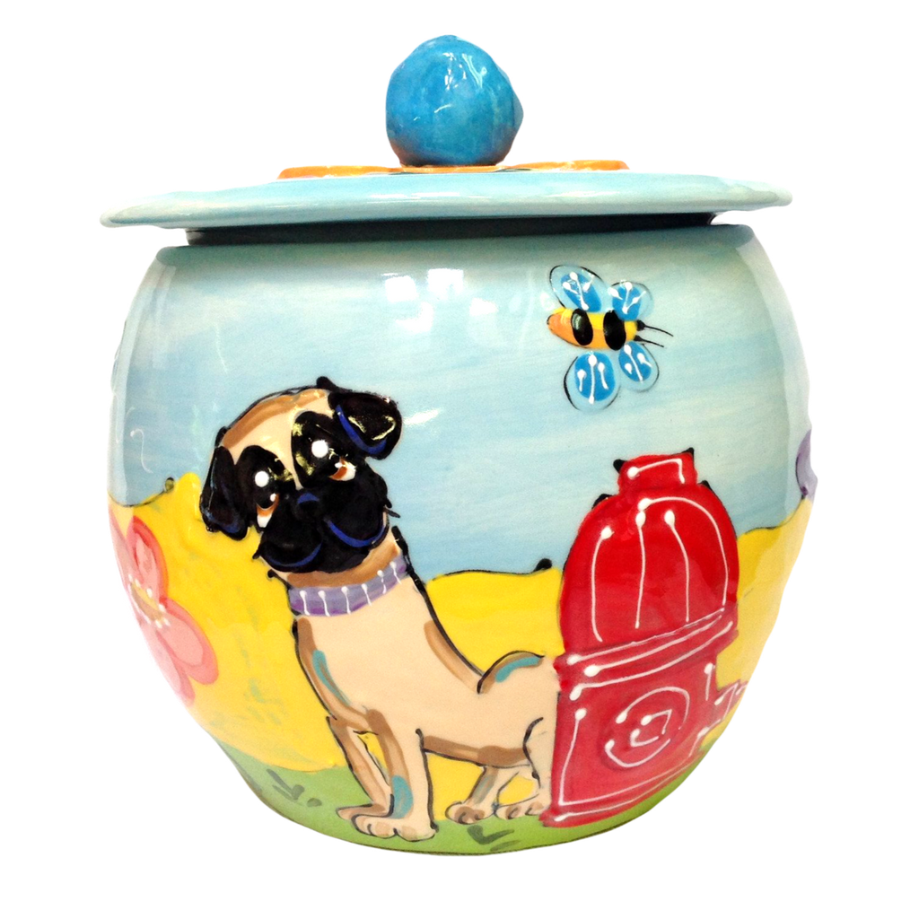 Custom Ceramic Pottery Dog Treat Jar. Unique and one of a kind, each piece is hand made in the USA.