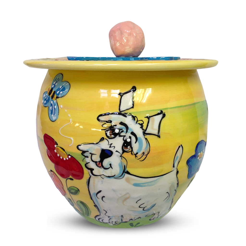 Custom Ceramic Pottery Dog Treat Jar. Unique and one of a kind, each piece is hand made in the USA.