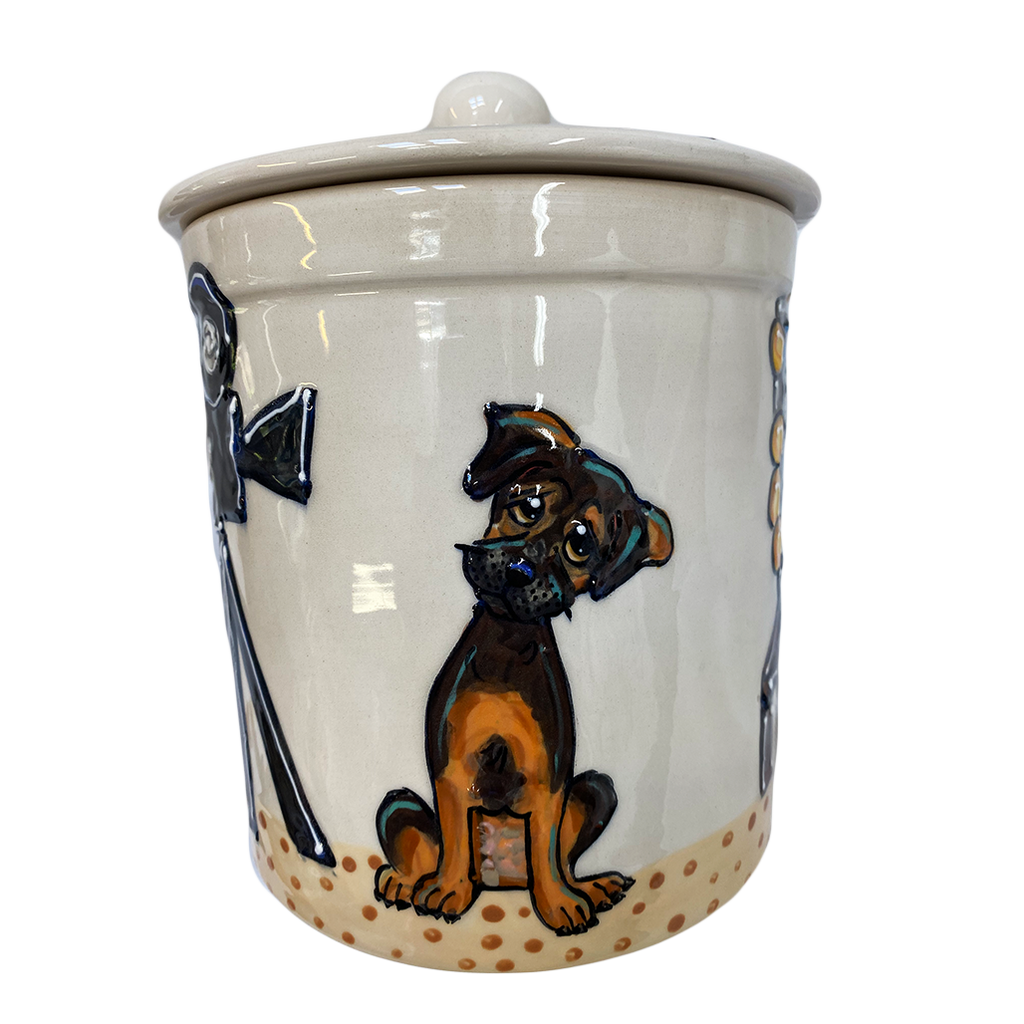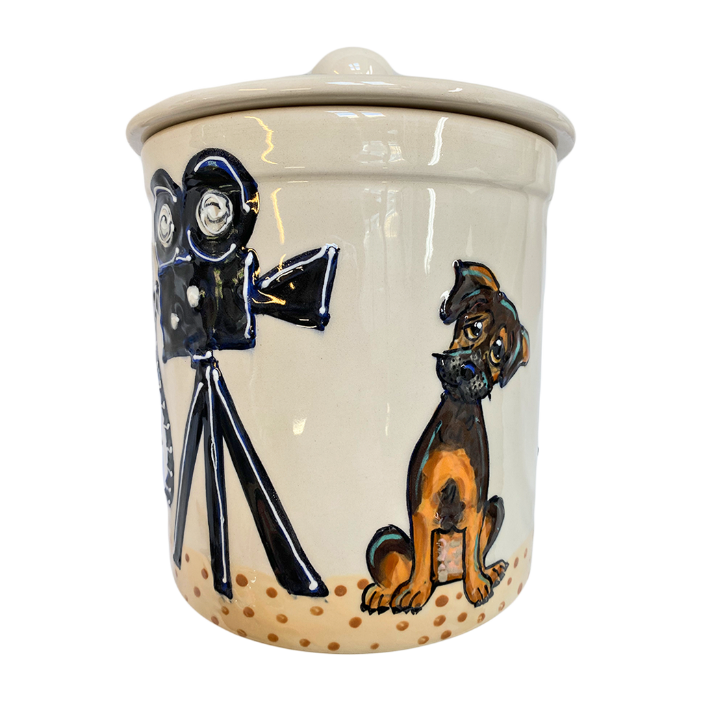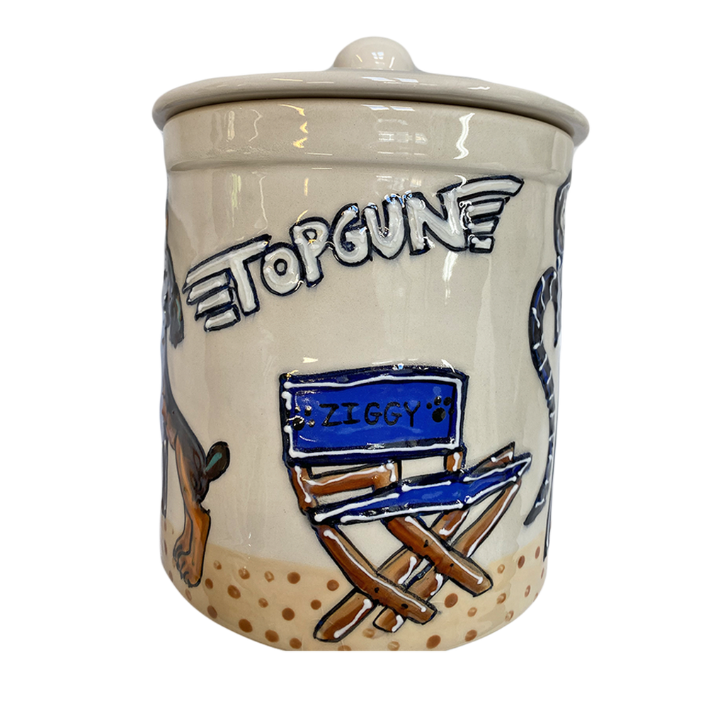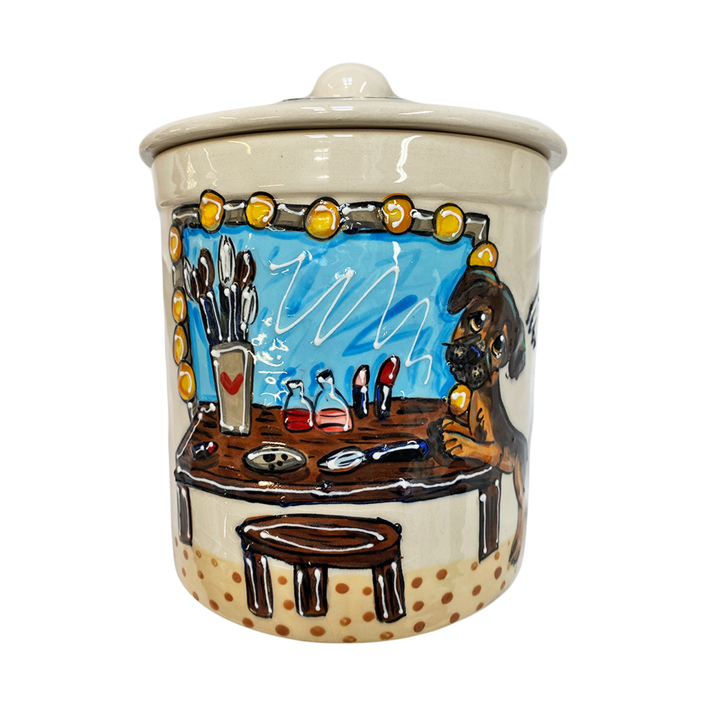 Custom Fine Porcelain Ceramic Pottery Dog Treat Jar. Unique and one of a kind, each piece is hand made in the USA.