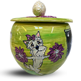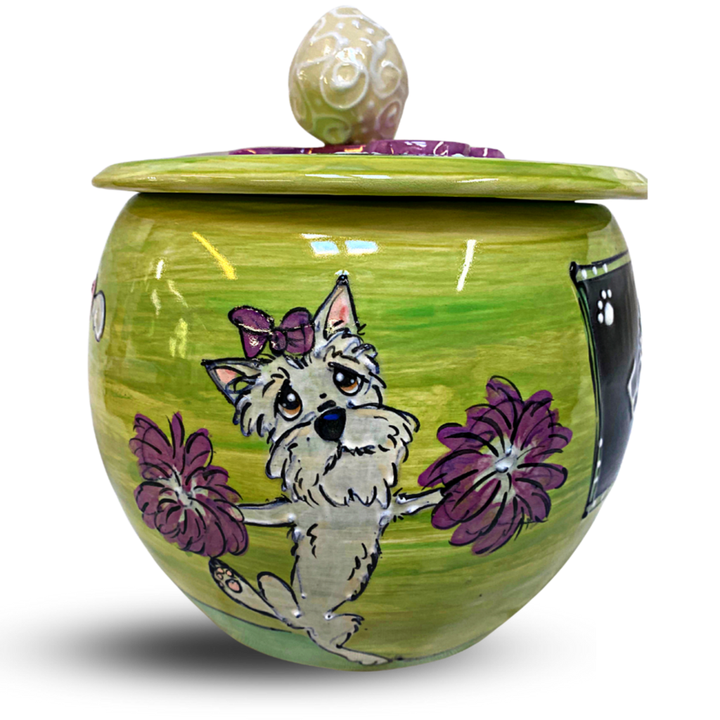 This unique Westie Treat Jar is the perfect companion for your kitchen! The whimsical painted design of a Cheerleader Westie Dog Breed will bring some fun and excitement to cookie time. Enjoy a delicious treat with a side of Westie team spirit! WOOF!