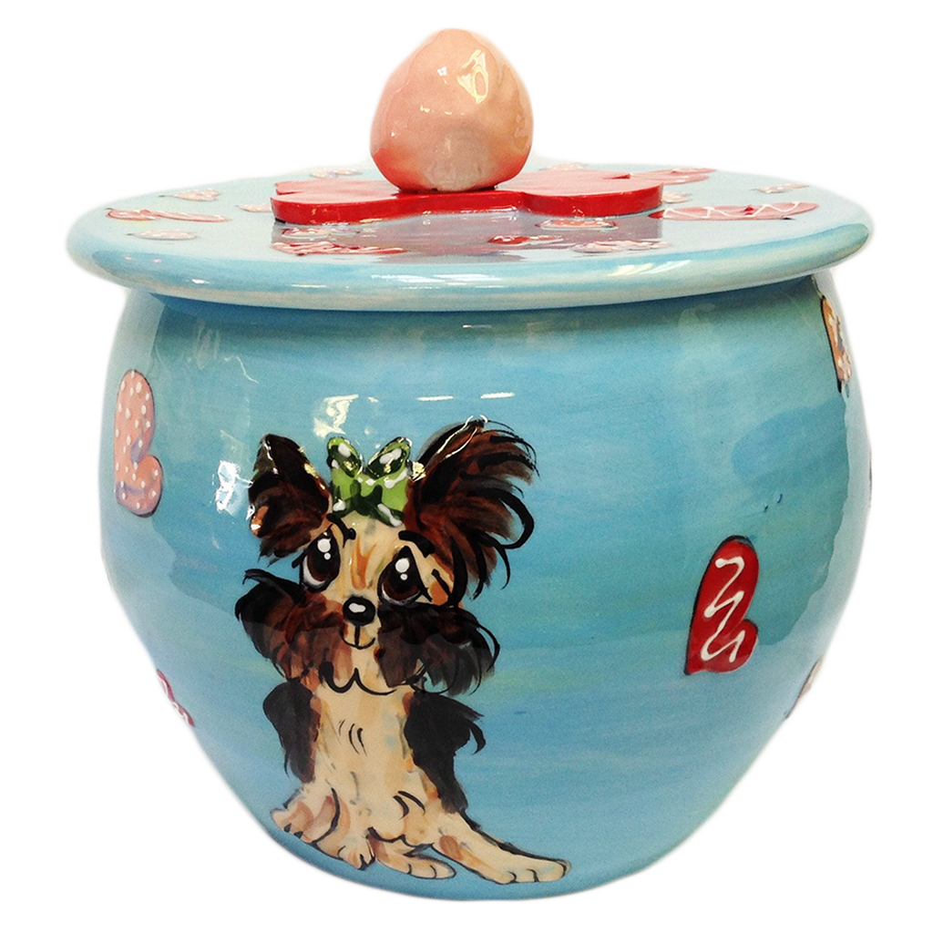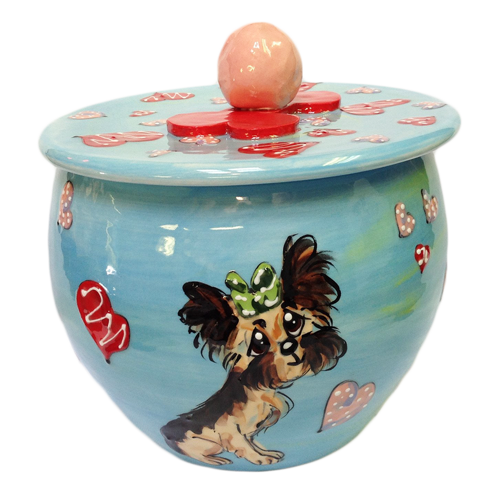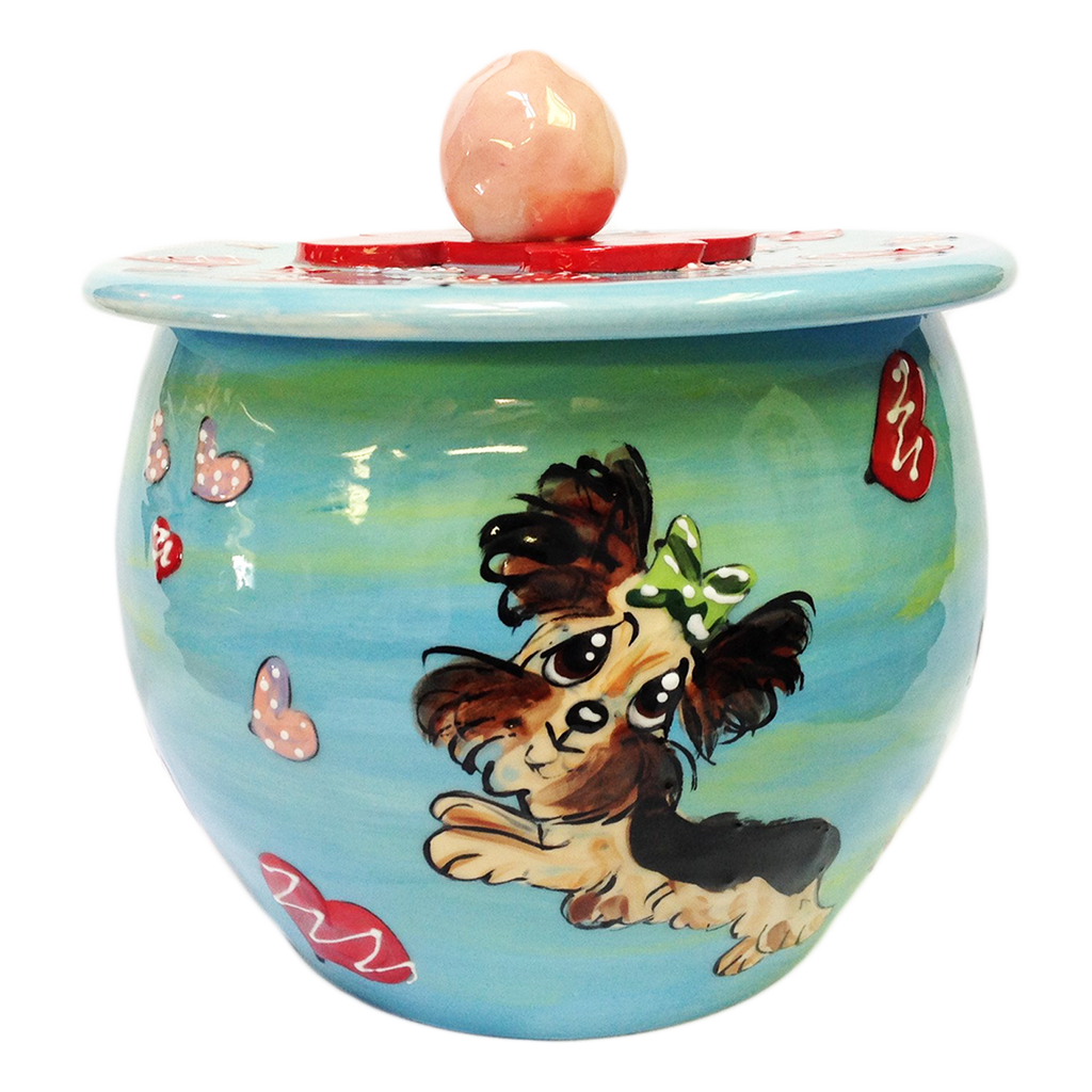 Custom Ceramic Pottery Dog Treat Jar. Unique and one of a kind, each piece is hand made in the USA.