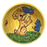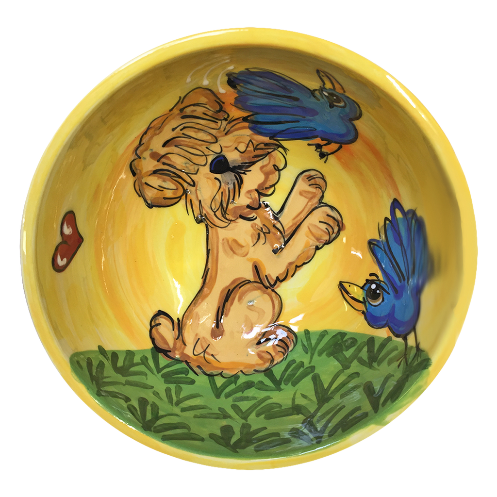 Adorable Wheaten Terrier doggie shown on this ceramic food/water bowl with complimenting hand-mixed background color.