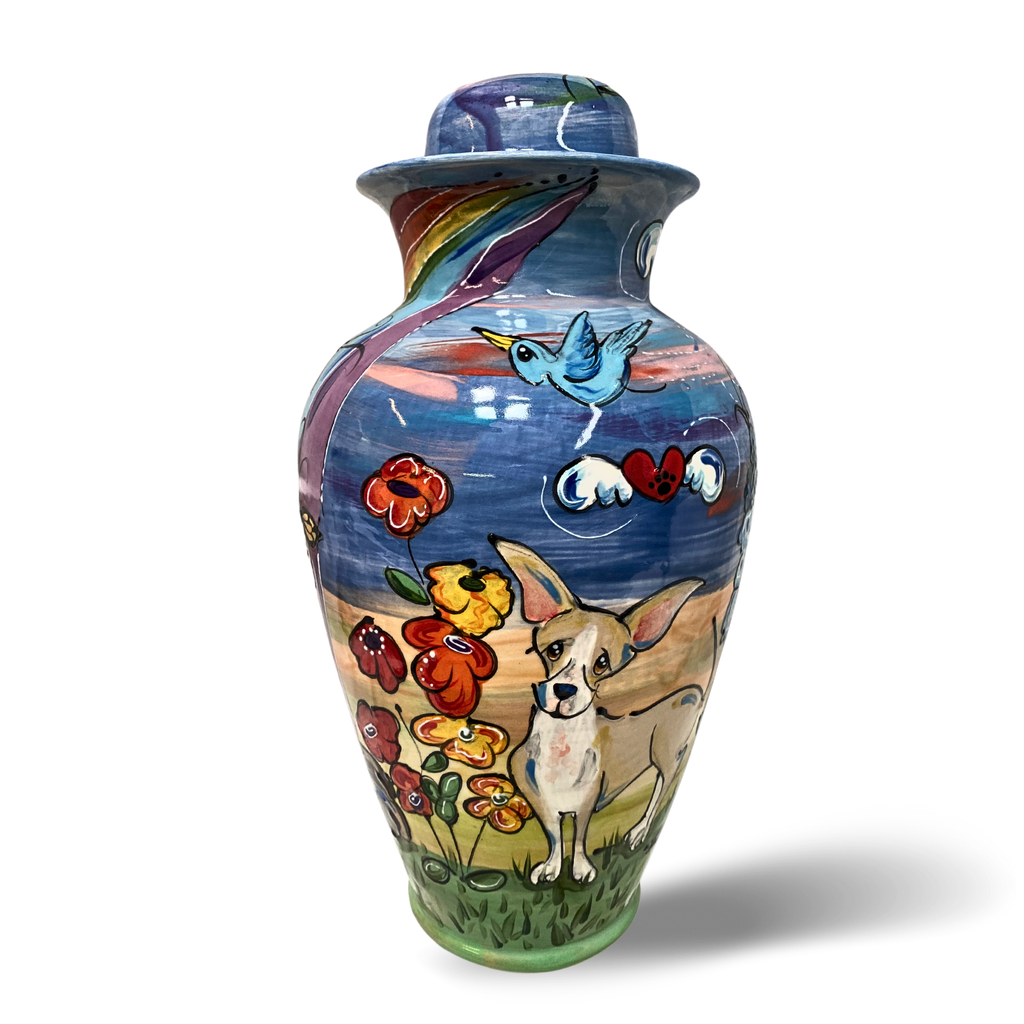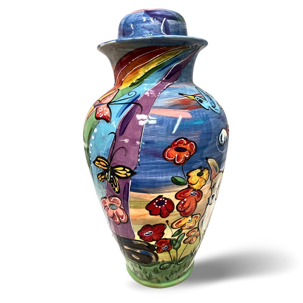 Pet memorial urns- white porcelain ceramic fine handcrafted original art created at the Faux Paw Studios made in America, custom designs your special pet made with loving care as a lasting cherishable Pet memorial