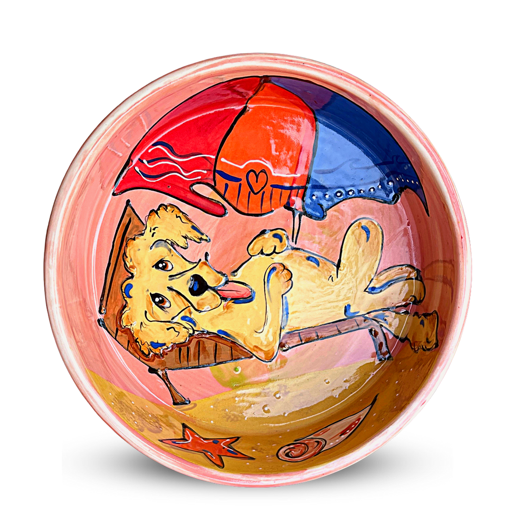 Snack time will always be pup-tastic with this Golden Retriever Bowl! Featuring a furry friend lounging by the beach, this brightly-painted bowl will make mealtime a joyride(woof!). Plus, with its durable construction, you can feed your furball with confidence day after day. Chow down!