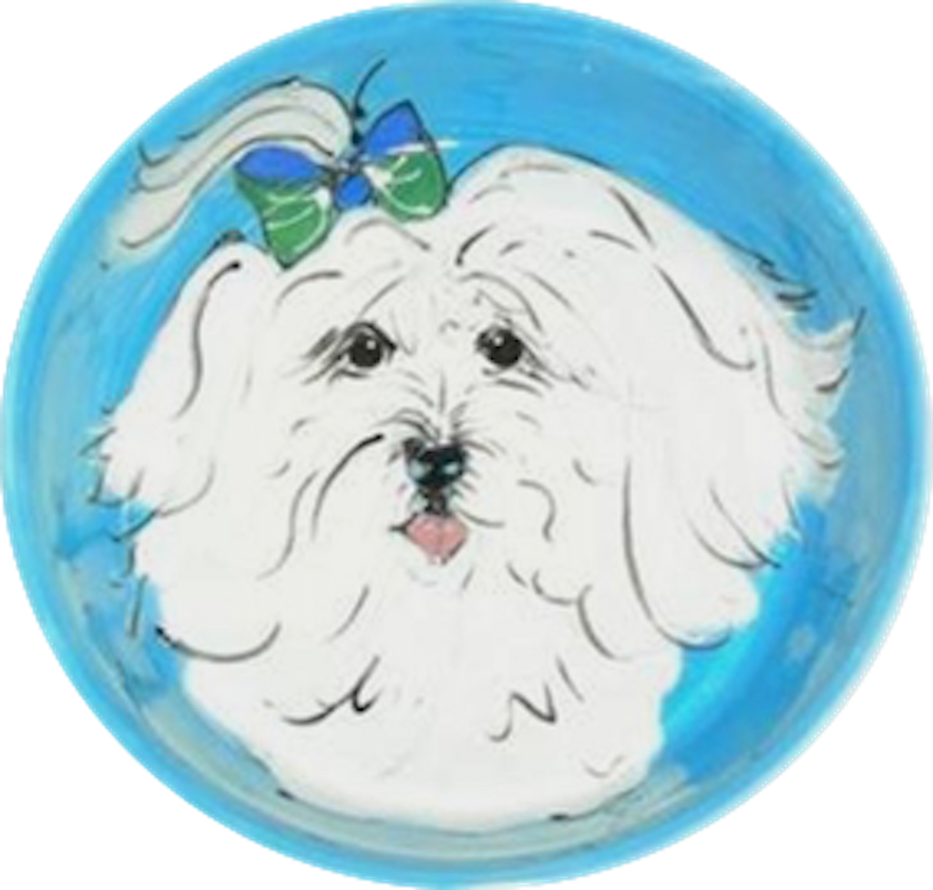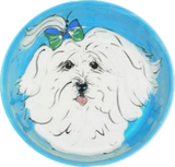 Jeanne's Sweet 'n Neat Coton de Tulear - Personalized Custom Pet Bowl with Adorable Coton de Tulear doggie shown on this ceramic food/water bowl with complimenting hand-mixed background color.