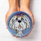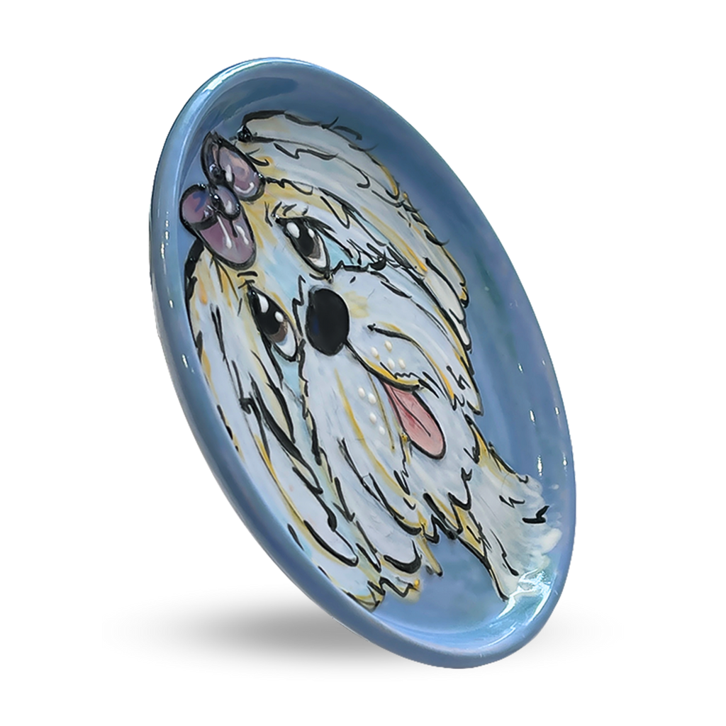 This unique and handcrafted Trinket Dish has been expertly painted with a Maltese dog, making it an ideal gift for dog lovers. Not only is it a decorative piece, it is also microwave and dishwasher safe, making it a practical solution for your kitchen. Its small size makes it perfect for holding jewelry, a spoon rest, tea bag rest, or as a sympathy gift. Get the perfect custom gift with this handmade ceramic dish designed in the USA.