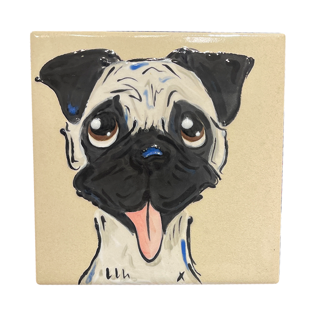 Adorn any area with this handcrafted Pug tile! Expertly made, it showcases captivating hues and a beloved canine pattern, accenting the décor with a lighthearted feel. Display it boldly to cherish your admiration for these beloved pooches!