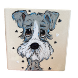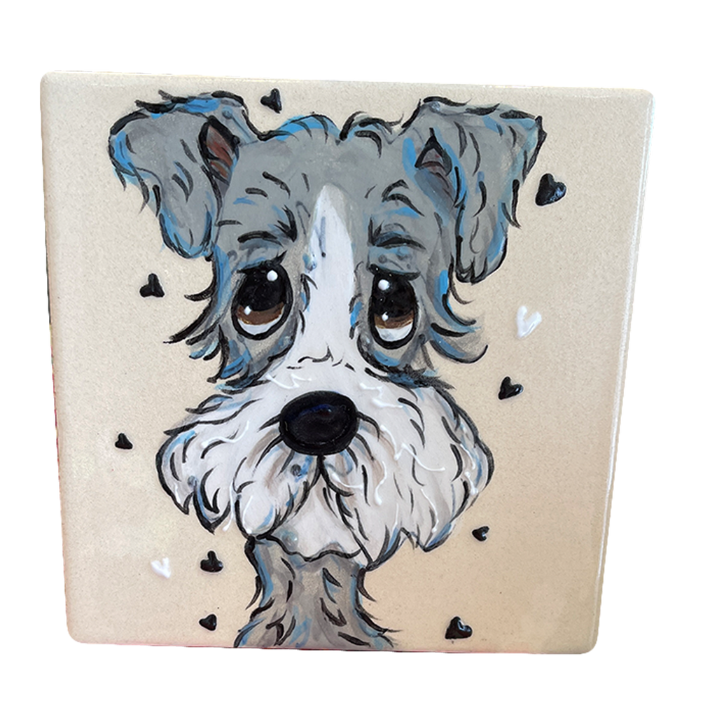 Treat your walls to a furry companion with the Schnauzer Tile! Brighten any room in your home with an adorable, hand-painted Schnauzer on our smooth, ceramic mounted tile. Ready for playtime? Just say the word-and your walls will jump to life! (Not literally, of course).