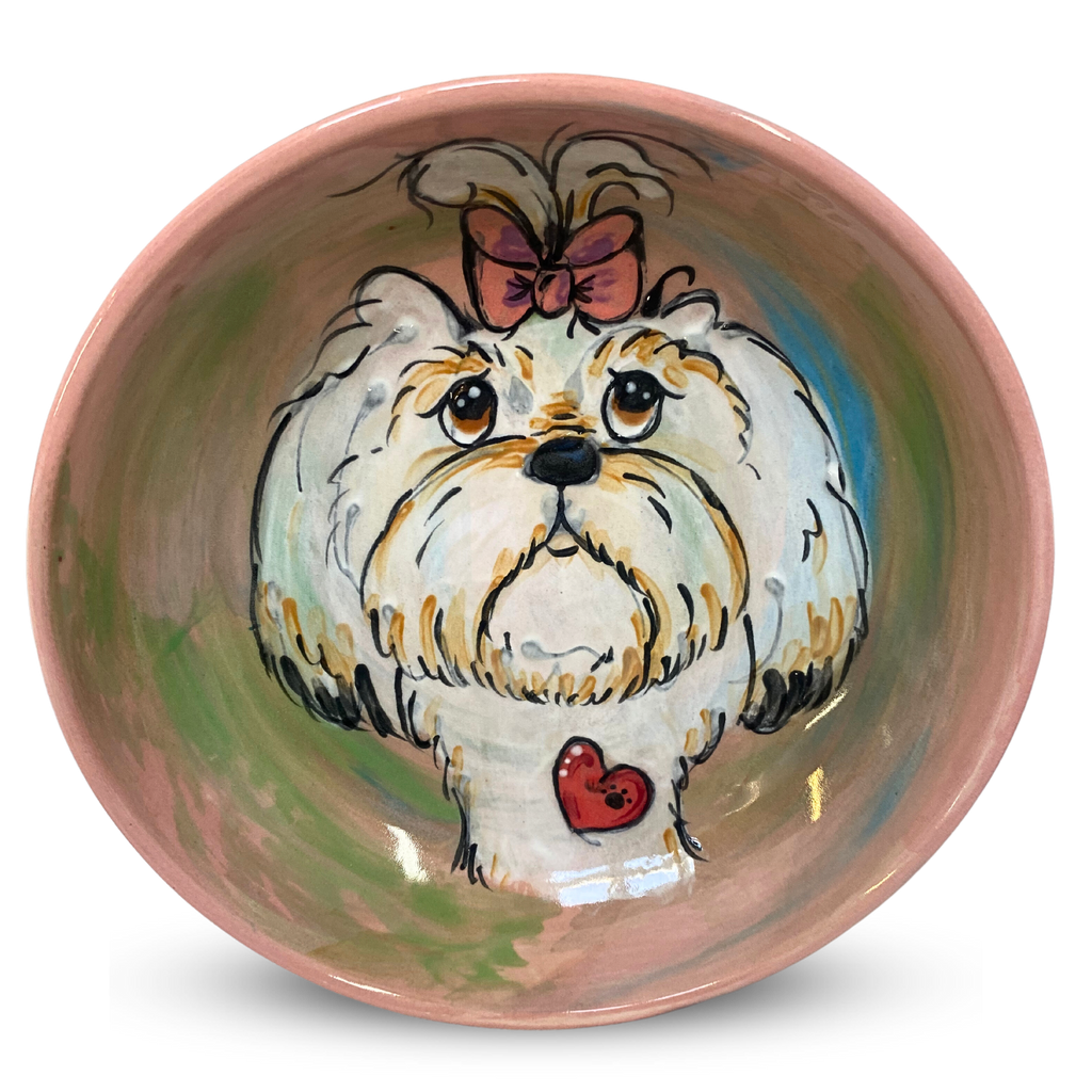 This ceramic saucer bowl or flat dish is perfect for Shih Tzu owners! Each dish is hand painted with a custom Shih Tzu design and made in the USA. Durable and microwave and dishwasher safe, this dish is sure to last for many years.
