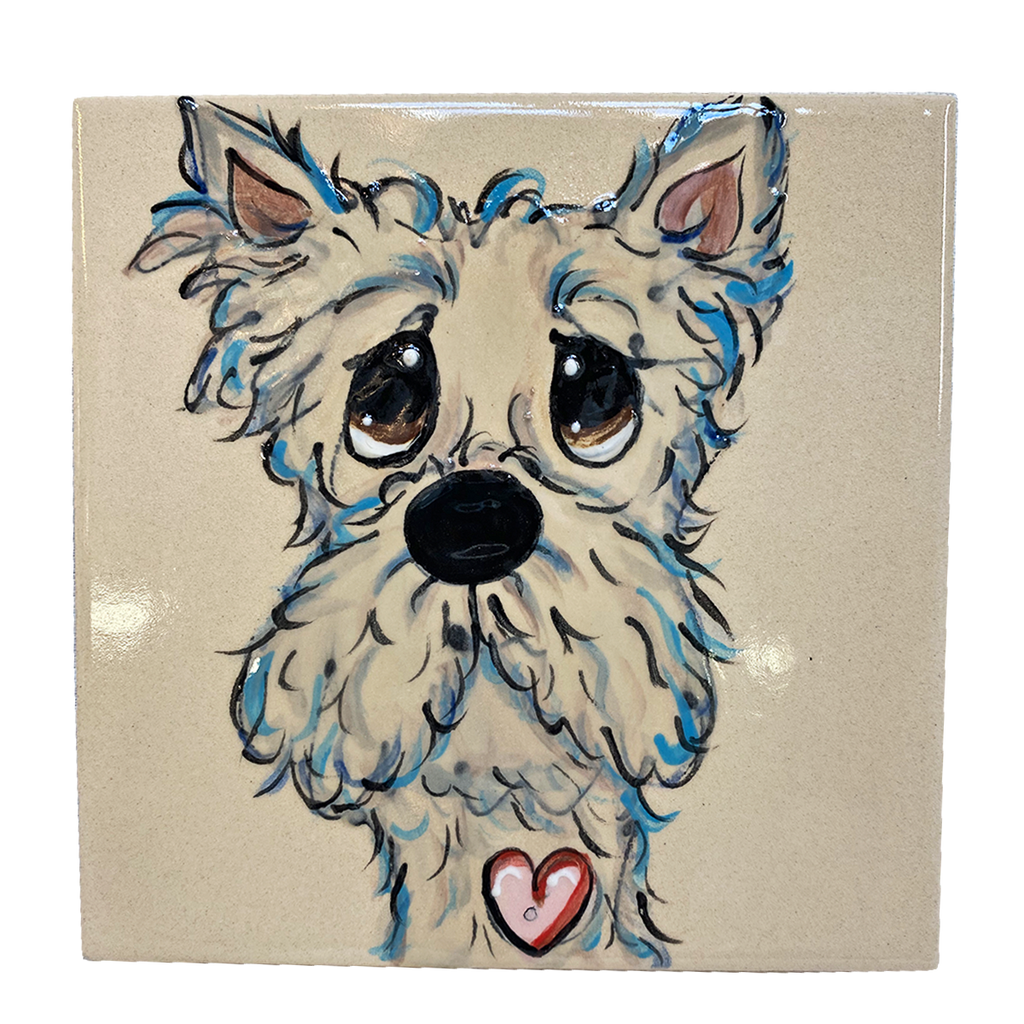 Adorn any area with this handcrafted West Highland Terrier tile! Expertly made, it showcases captivating hues and a beloved canine pattern, accenting the décor with a lighthearted feel. Display it boldly to cherish your admiration for these beloved pooches!