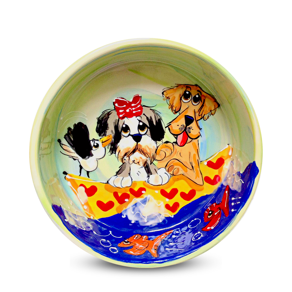 Ahoy pup-lovers! Keep your dog's meals seafaring-ly delicious with this ceramic food bowl hand-painted with a crew of merry sailing dogs. Taking mealtime to smooth sailing waters never tasted so good! (Yaarrrr!)