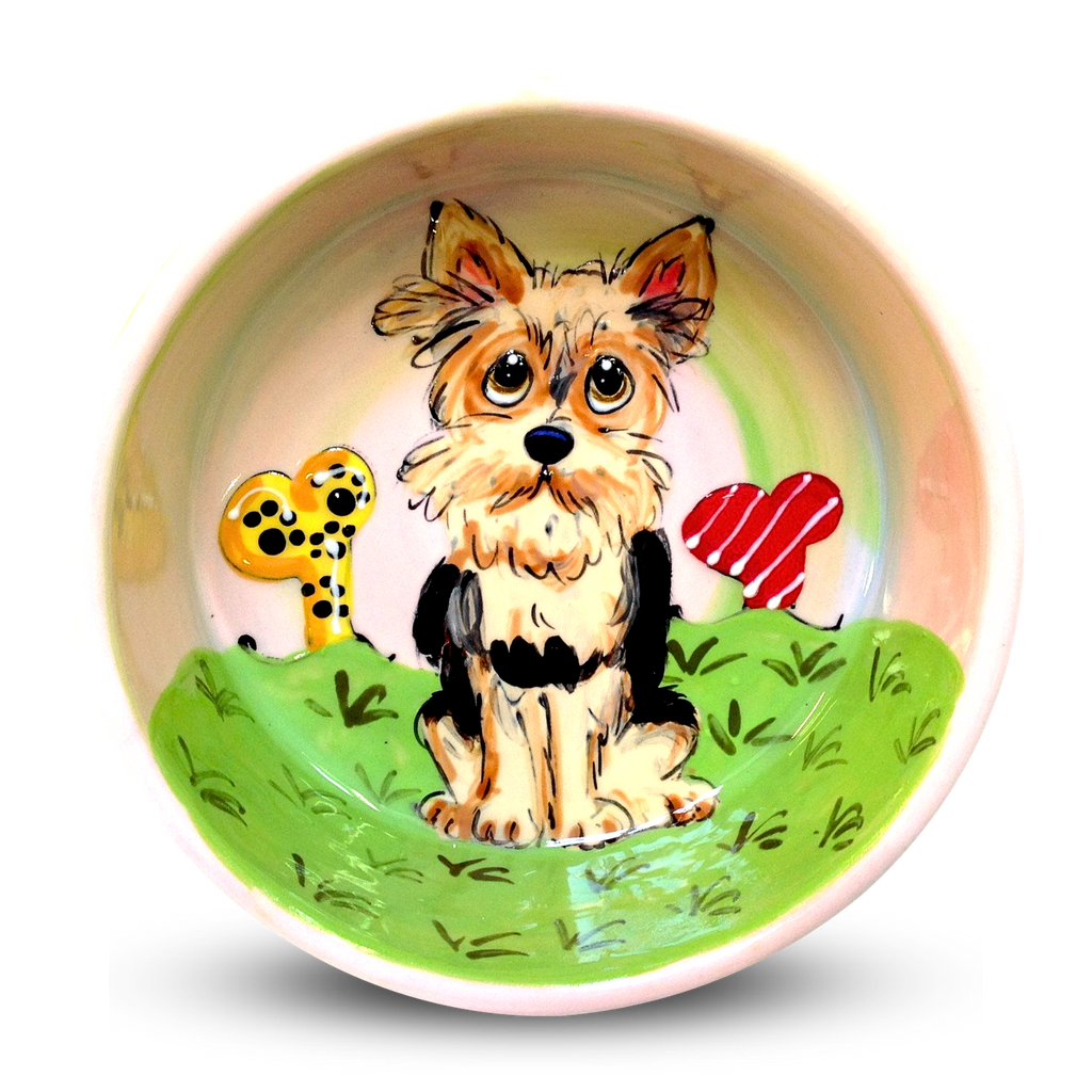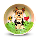 This ceramic dish is perfect for Yorkie owners! Each dish is hand painted with a custom Yorkie design and made in the USA. Durable and microwave and dishwasher safe, this dish is sure to last for many years.
