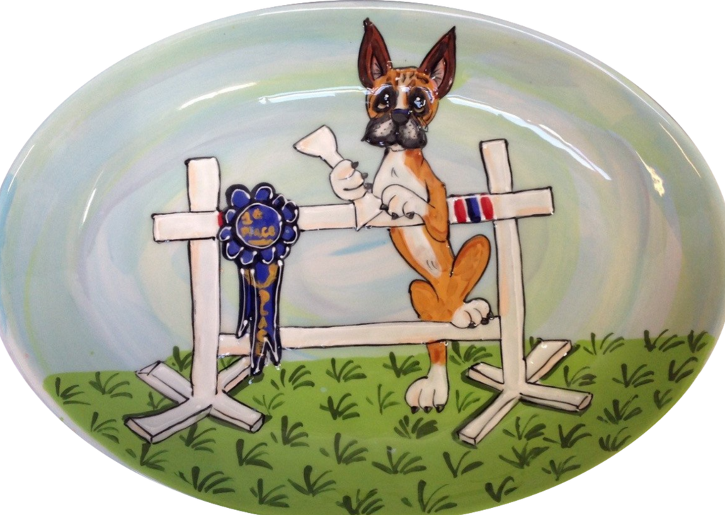 Ensure a successful award presentation at your next dog show! Fine Hand Painted Ceramics with Whimsical Dogs. We can help you create a custom piece for any breed.