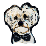 Whimsical, original, hand painted, clay sculpted Shih Tzu Dog ceramic tile, wall decor art work ready for hanging.