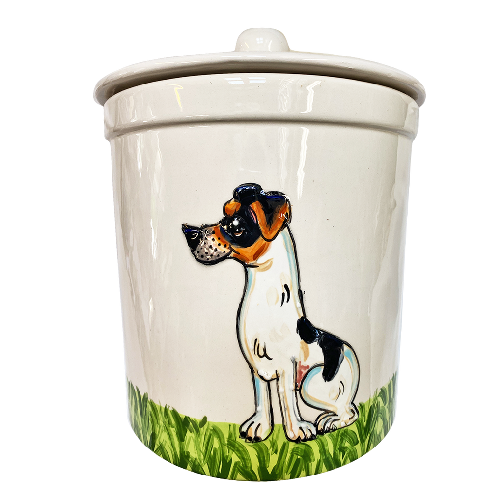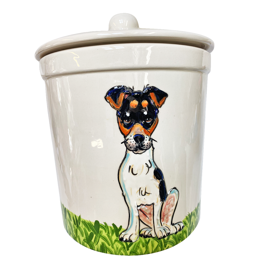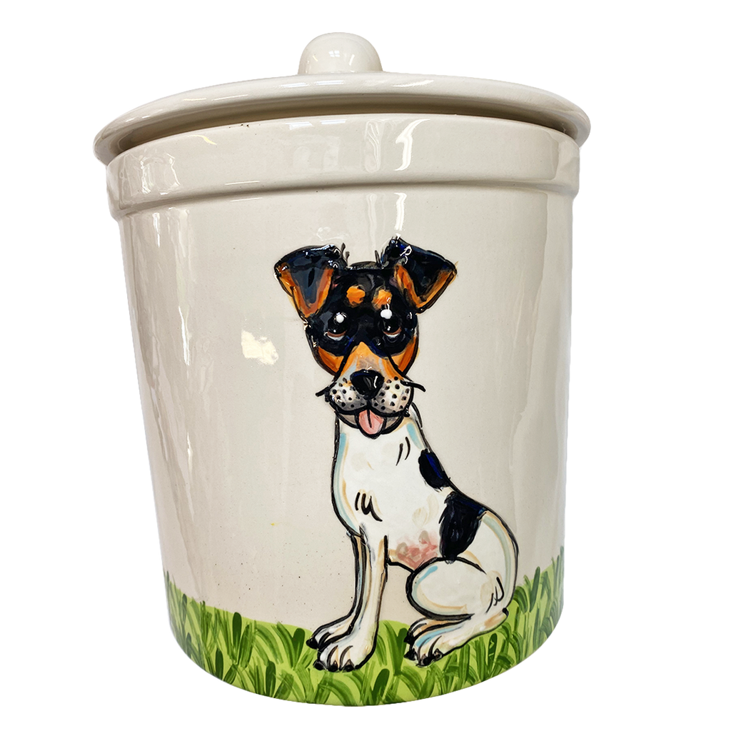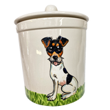 Jack Russell Terrier contemporary treat jar hand-painted by Debby Carman.