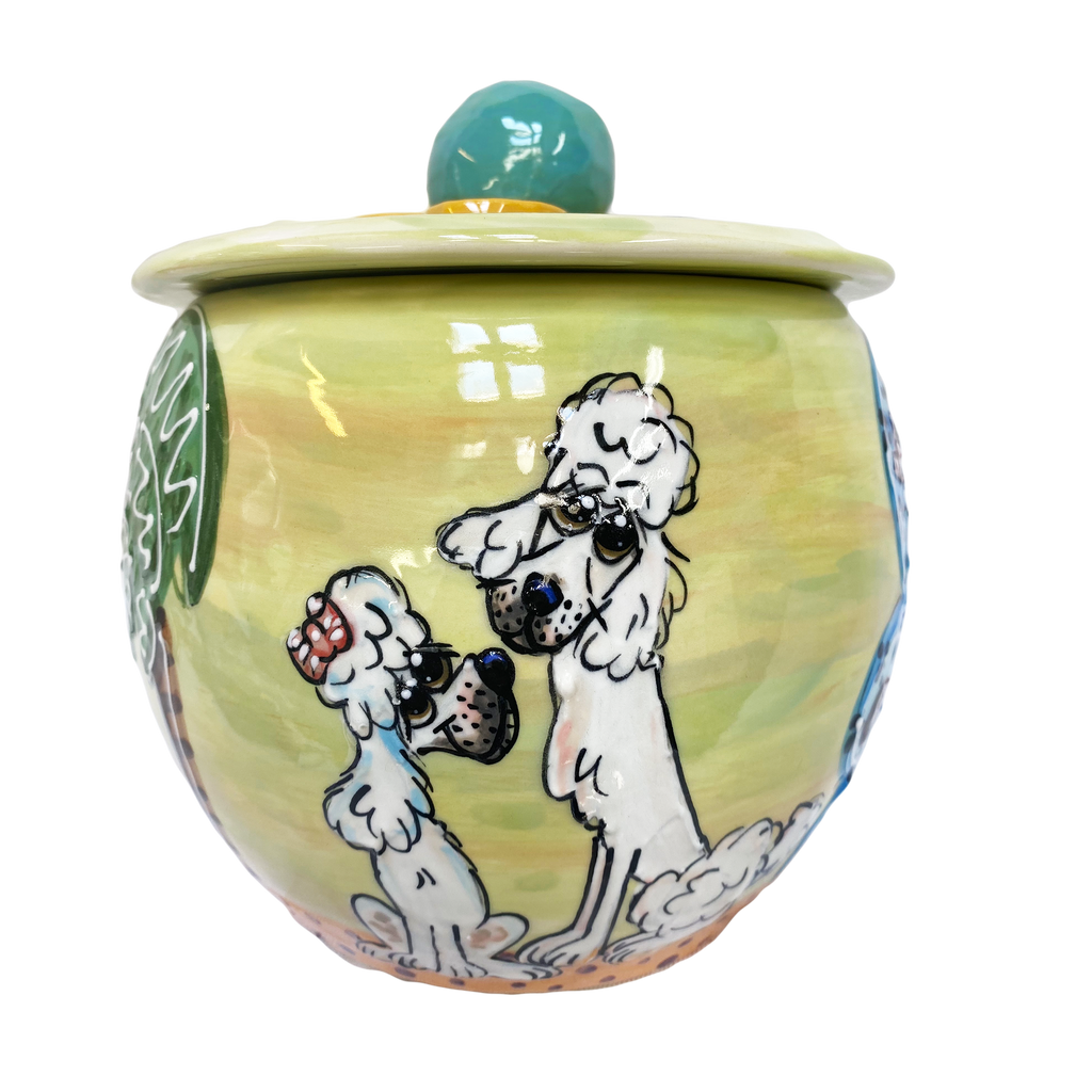 Custom Ceramic Pottery Poodle Treat Jar. Unique and one of a kind, each piece is hand made in the USA.