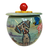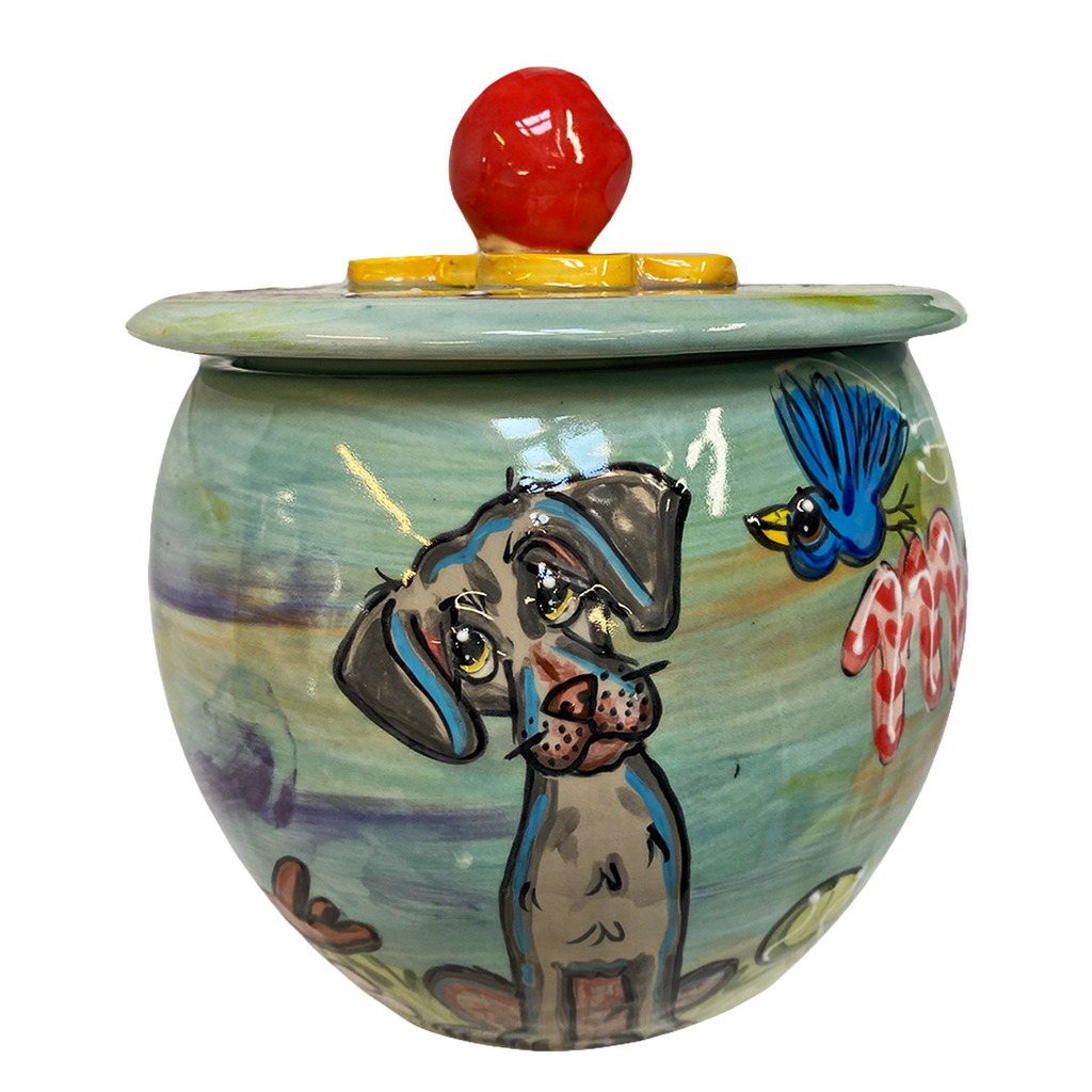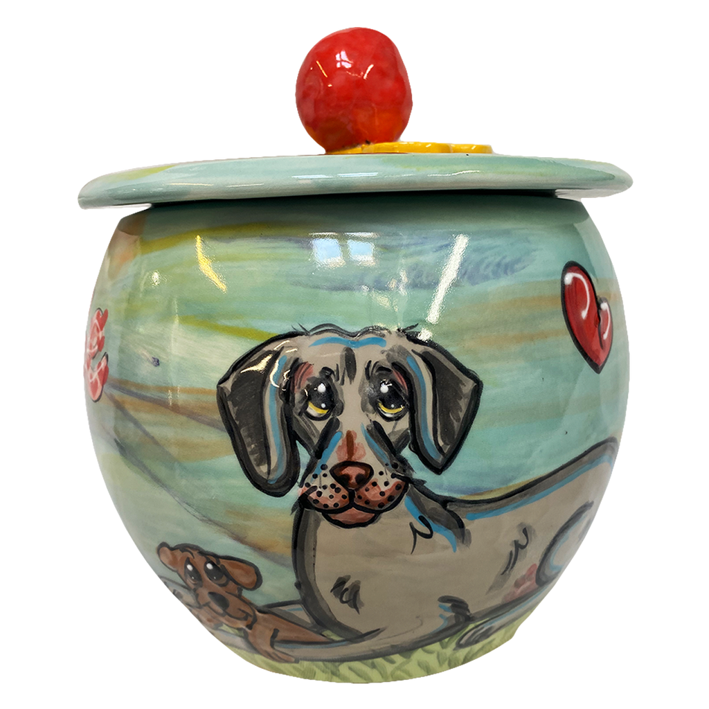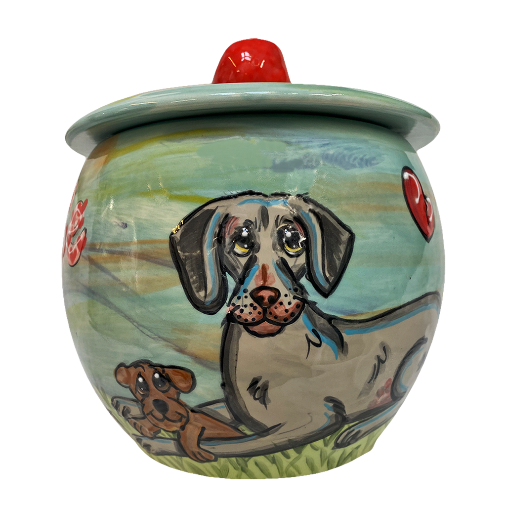 Custom Ceramic Pottery Weimaraner Treat Jar. Unique and one of a kind, each piece is hand made in the USA.