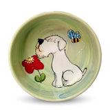 Immerse your beloved Sealyham Terrier in a sensory adventure with our "Whimsical Whiff" bowl. Hand-painted with care by Debby Carman and featured on FauxPaw.com, this bowl depicts a curious Sealyham taking in the sweet scents of a blossoming garden, complete with playful bees. The soft green backdrop evokes a serene outdoor setting, perfect for enhancing your pet's mealtime. Crafted in the USA, this ceramic bowl is a blend of food-safe functionality and whimsical artistry, also fully equipped for the microwave and dishwasher. It's a delightful dishware choice for pet owners who wish to sprinkle a little joy into their pup's daily routine.