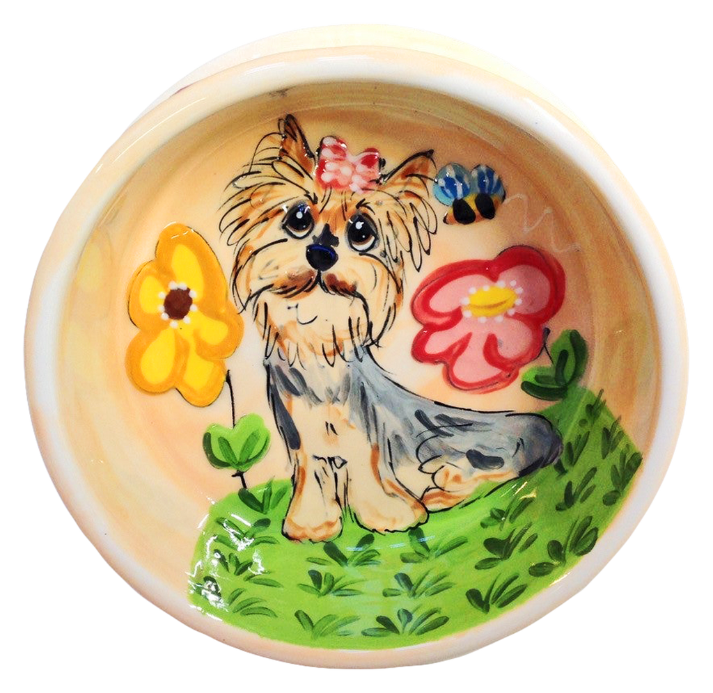 Show off your pup-sonality with the Yorkie Garden Bowl! This one-of-a-kind, hand-painted ceramic bowl features a sweet Yorkshire Terrier in a gorgeous flower garden – sure to make every mealtime extra special. So why wait? Let your pup be the star of your tabletop! Woof!