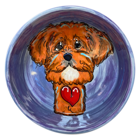 Each ceramic pet bowl is hand-painted and one-of-a-kind. Lead-free, non-toxic, microwave & dishwasher safe. Personalization included—crafted in the USA.