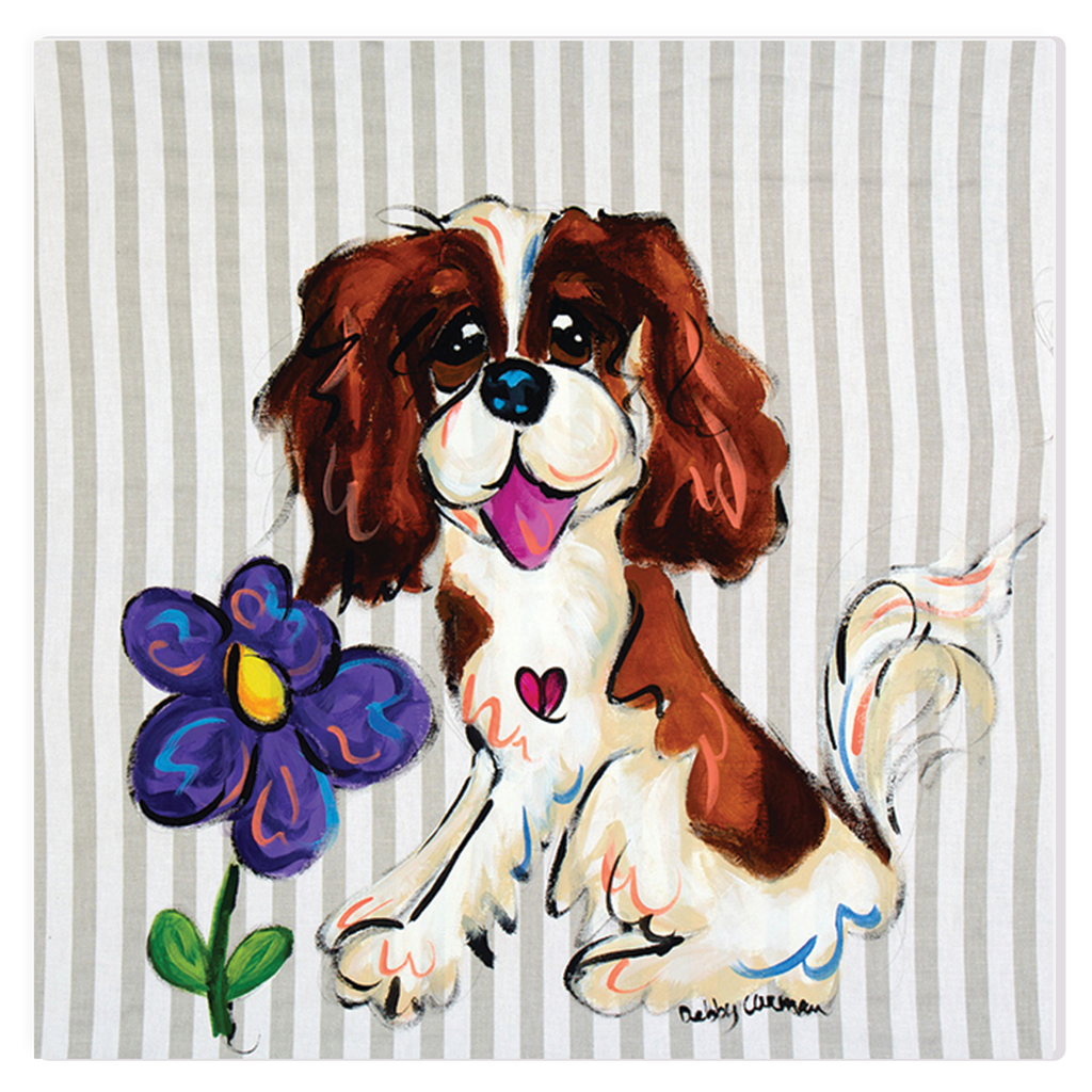 Part of our signature collection and licensed art, Cavalinda is a whimsical Cavalier King Charles painting featured on various products manufactured by retail companies world wide.