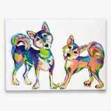 Original painting of rainbow Shiba Inu dogs on canvas by Debby Carman