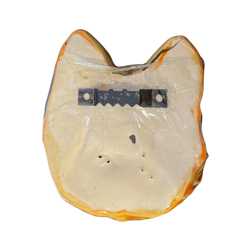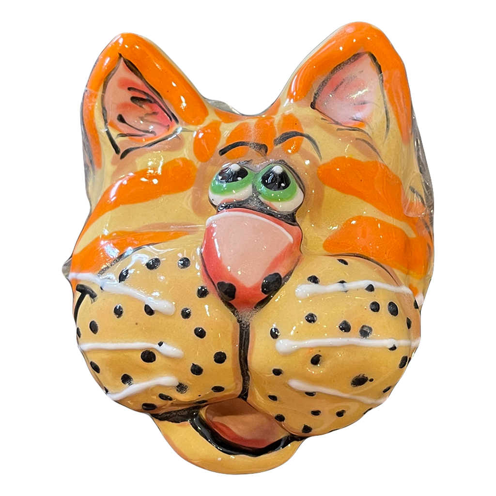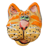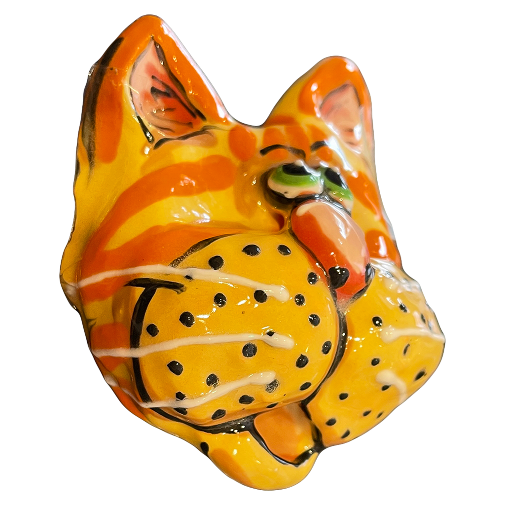 This sculpted ceramic cat face is a one of a kind, handmade, whimsical 3D piece of wall art that will brighten your home! Custom available.