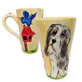 This beautiful, tall ceramic latte mug showcases a detailed portrait of the iconic Bearded Collie breed. Its eye-catching design is perfect to enjoy your favorite hot beverage.