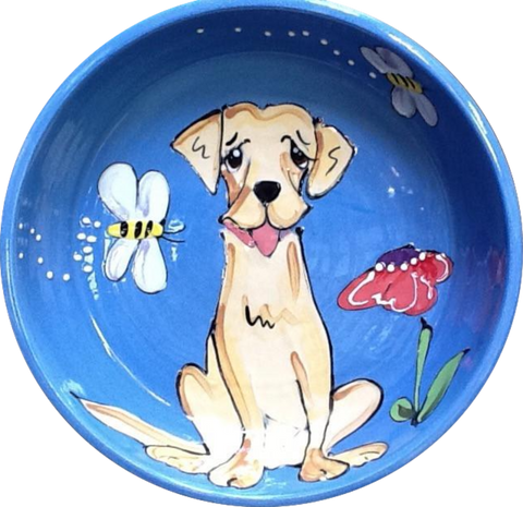 Chihuahua doggie shown on food safe ceramic food/water bowl by Debby Carman.