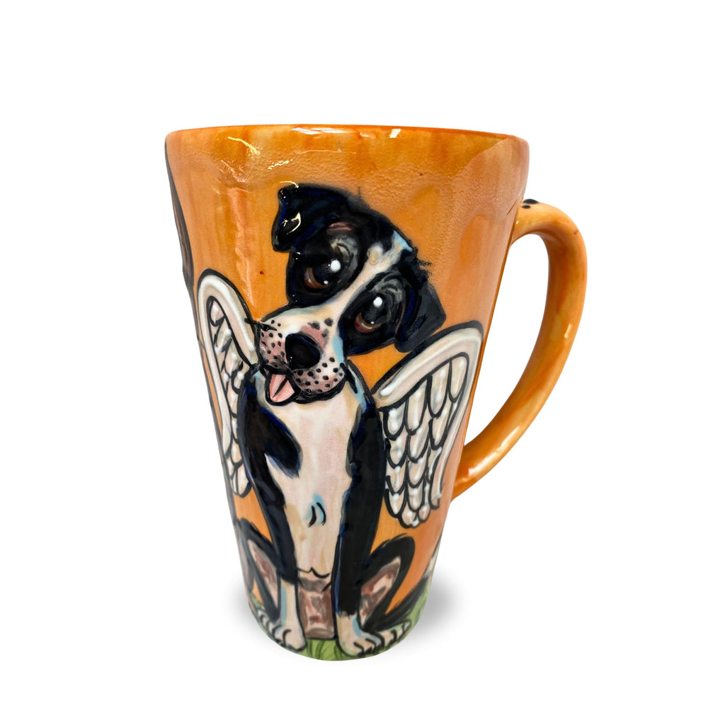 Lift your spirits to celestial heights with our "Heavenly Hound Latte" mug, where each sip is a tribute to the angelic nature of our beloved pets. Adorned with the hand-painted image of a Border Collie with wings, this mug from Debby Carman is a heartwarming reminder of the furry guardians in our lives, both past and present.
